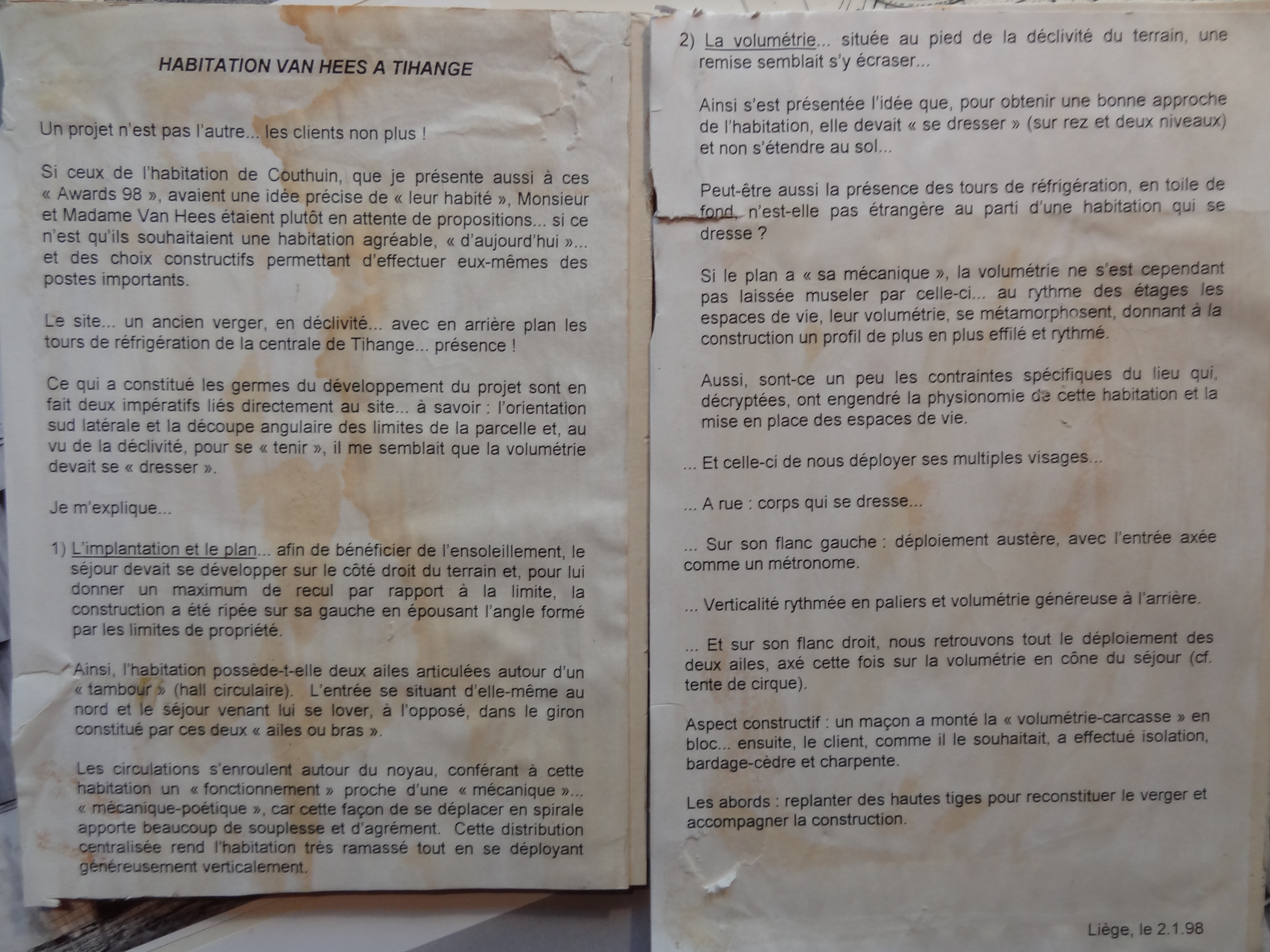 <em>Notice de présentation maison Van Hees Marchal à Tihange</em>, <em>Archives de l'architecte Herbecq</em>