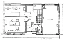La maison agrandie à l'arrière par l'architecte en 1960, son intérieur a été transformé (années 1990).