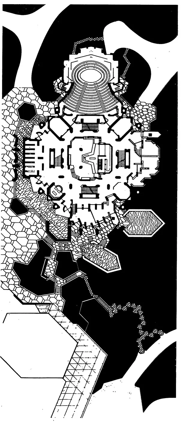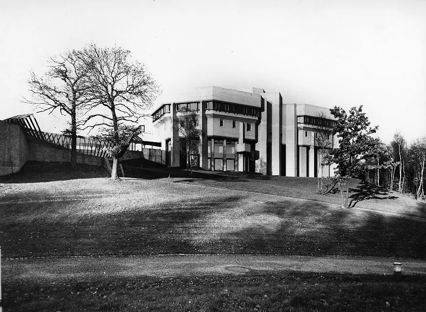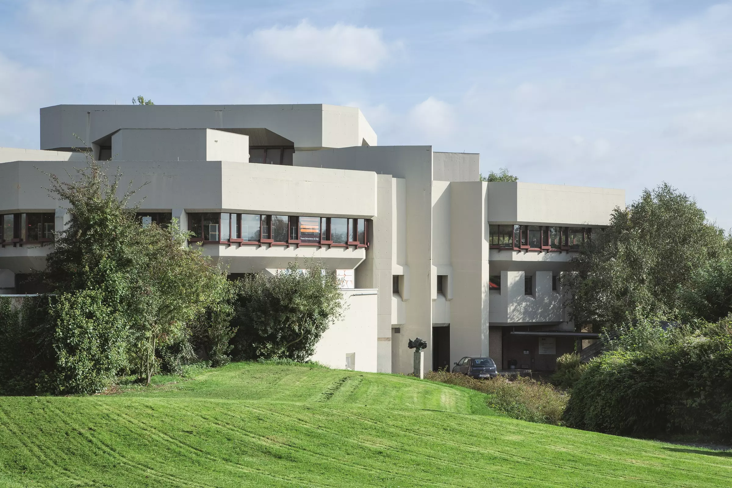 D'une conception originale, l'édifice (B8) se compose de quatre pavillons aux angles coupés, accolés à un carré central. Il présente des volumes marqués, percés de longues ouvertures étroites.