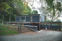 Afin de minimiser leur présence tout en maintenant les parois dans l'épaisseur de l'ossature, menuisier, entrepreneur, ingénieur et architecte travaillent ensemble à des assemblages empiriques. Tant par la manière dont elle se positionne dans son environnement que par le registre formel qu'elle emprunte, la maison convoque naturellement une série de filiations avec les Case Study Houses.
