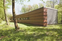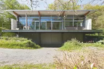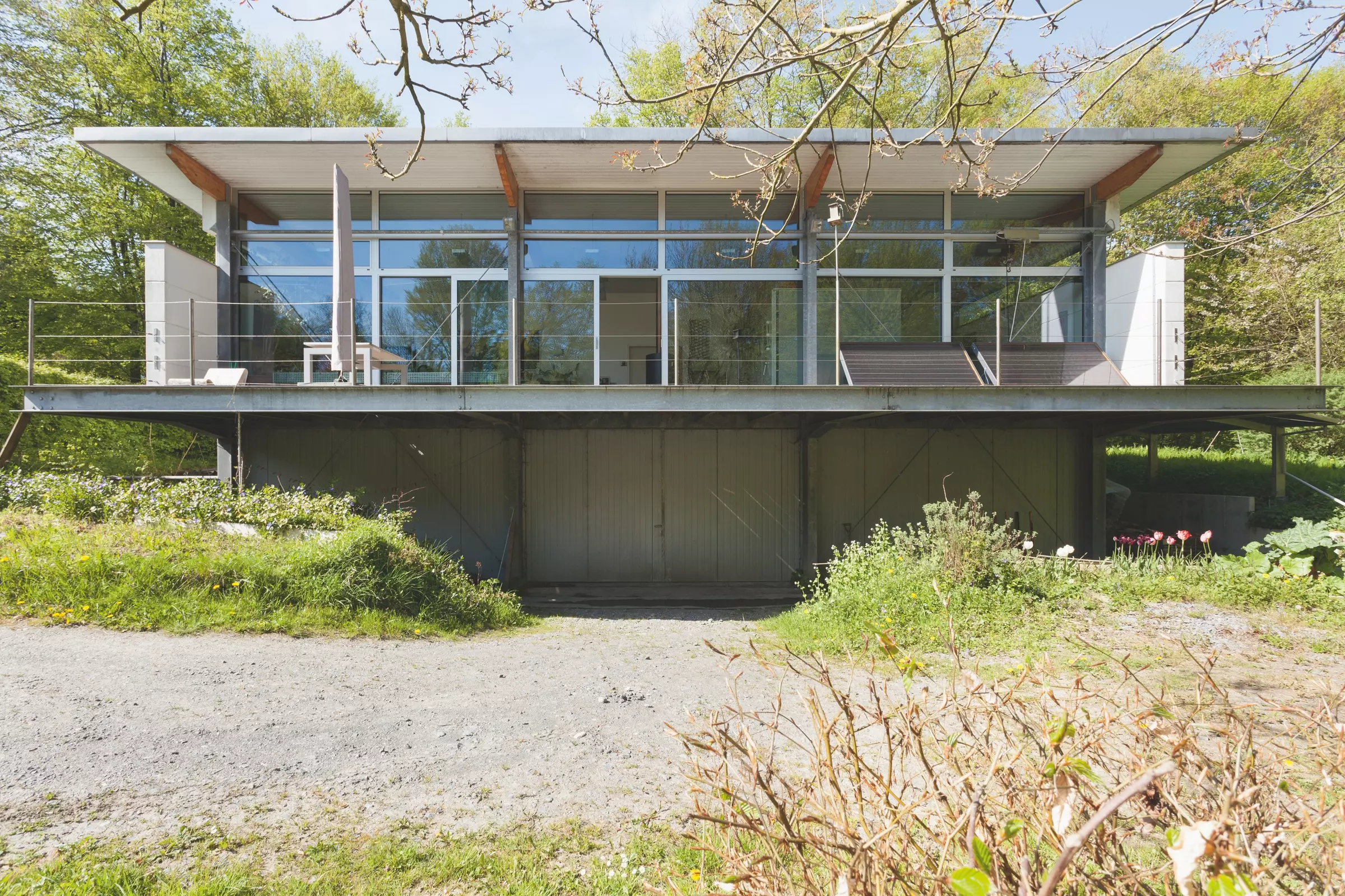Dans un contexte boisé de quartier résidentiel pavillonnaire, deux habitations se distinguent par leur caractère industriel tant technique qu'esthétique.