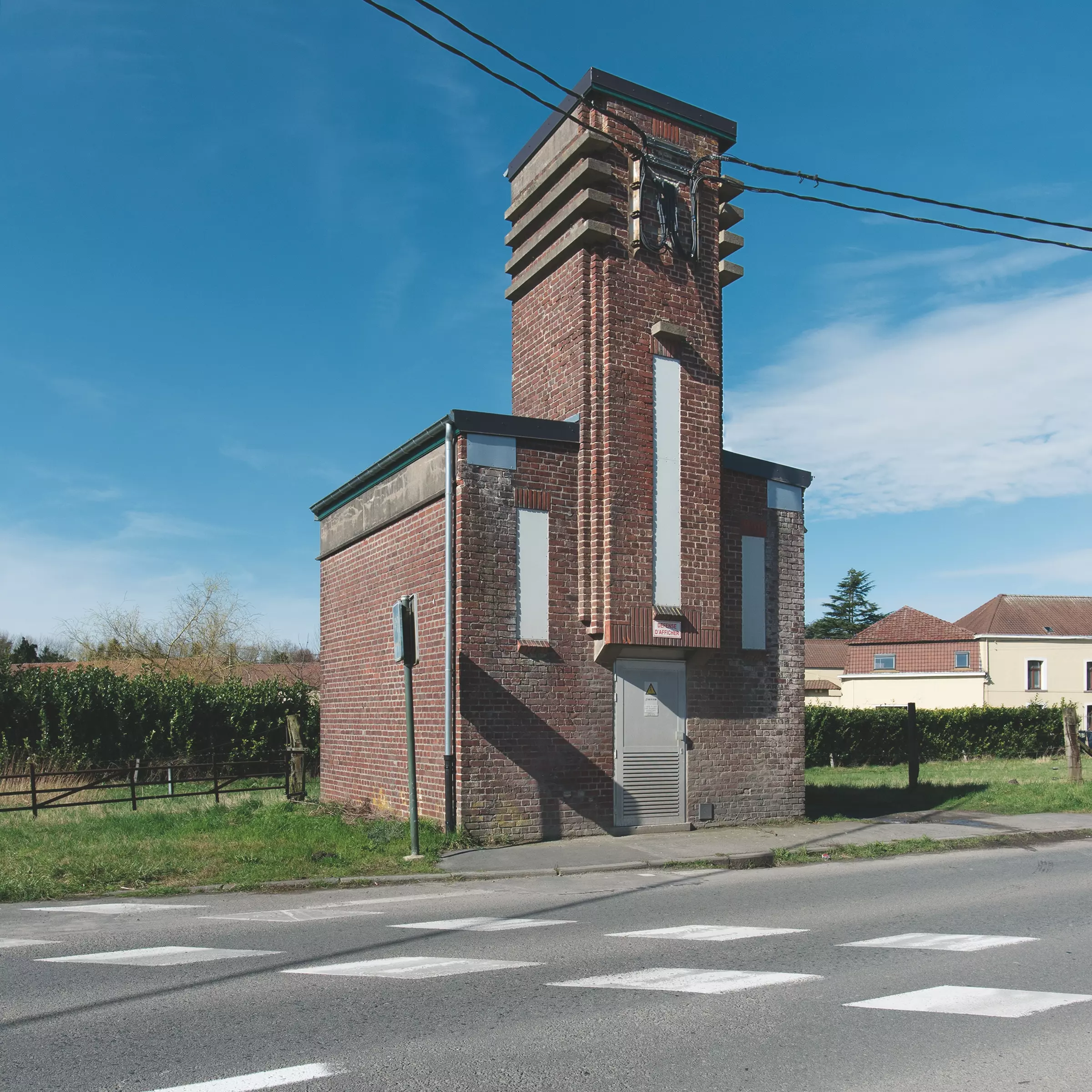 Cette cabine électrique est réalisée en appareillage de briques avec des éléments saillants en béton, deux matériaux qui composent et animent sa façade symétrique. Le dessin de la tour et la finesse de la mise en œuvre ne sont pas sans rappeler l'école d'Amsterdam, tandis que l'attention décorative rappelle également une écriture d'ingénieurs que l'on retrouve notamment dans les stations de pompage situées en bord de Meuse dans la région liégeoise. Dès sa livraison, la cabine est alimentée par la centrale électrique d'Antoing au moyen de câbles armés souterrains à la tension de 13 000 V environ. Un équipement complet est installé à l'intérieur, comprenant les arrivées, les départs, le transformateur, le tableau de distribution et les disjoncteurs.