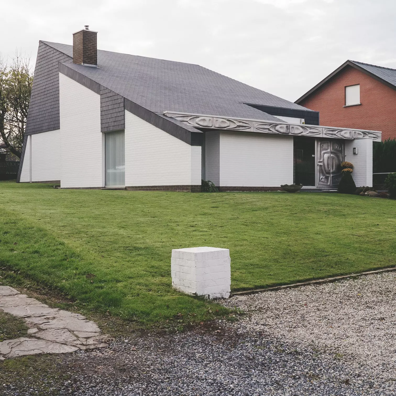 L'ambiance intérieure exploite les décalages de niveau, mezzanines et autres éléments obliques. Les pièces ne sont pas séparées physiquement, mais s'articulent par chevauchement. Les bas-reliefs et la porte d'entrée en aluminium de la façade ont été ajoutés ultérieurement par les propriétaires.