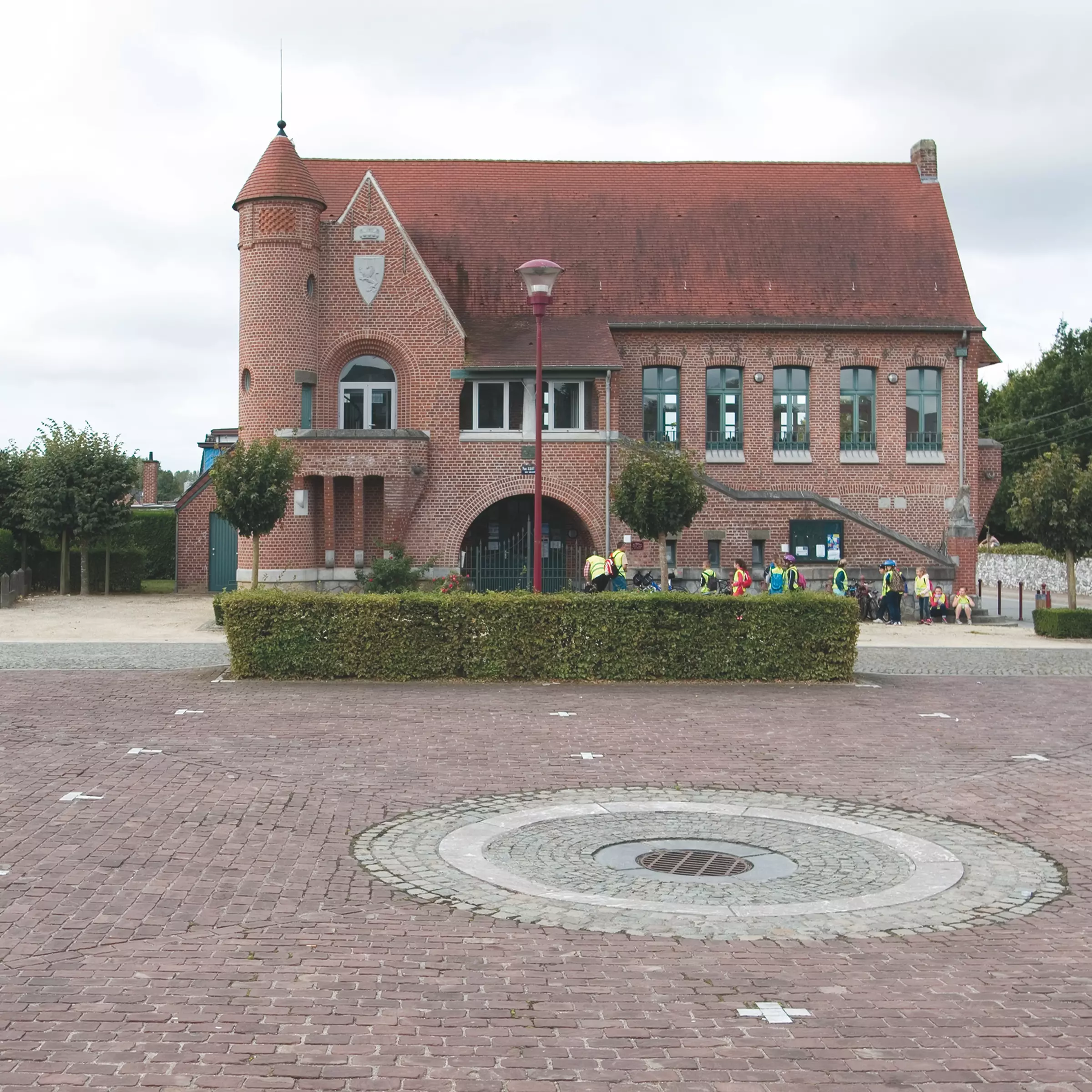 La maison communale sera, quant à elle, restreinte à la transformation d'un ancien corps de ferme (Le Grand Cabaret), situé à l'ouest de la place. Seule la façade arrière est maintenue, le reste de l'édifice correspondant à une construction neuve en maçonnerie de briques.