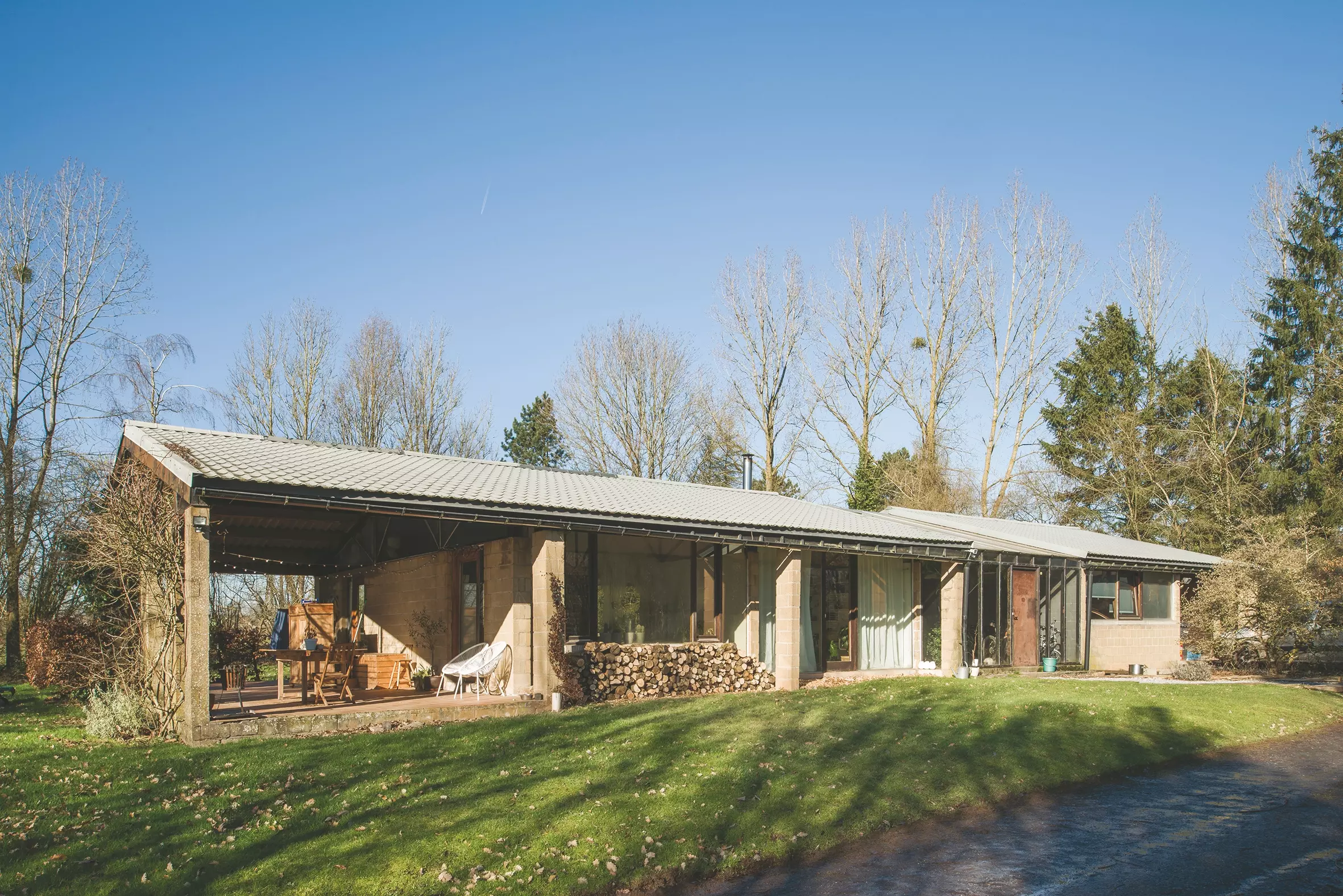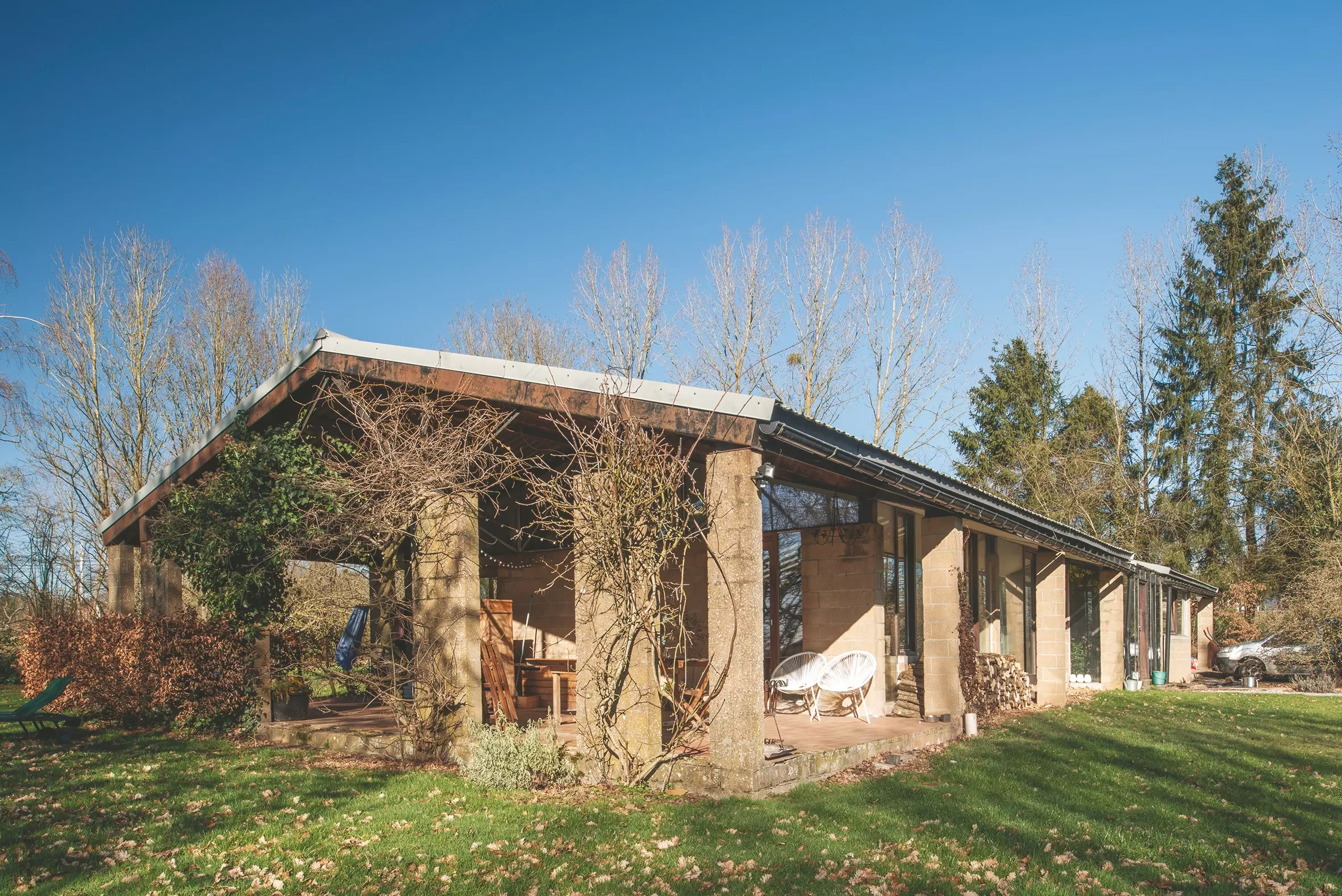 Cette maison fait partie d'une série d'habitations construites entre 1974 et 1979, présentant des similitudes de conception avec des variations de principes structurels : volumes longilignes bas et répétitifs couverts par une toiture en bâtière, envisagés d'emblée comme des systèmes prolongeables et évolutifs. Ces maisons sont étudiées pour des jeunes ménages avec des budgets limités qui souhaitent s'investir dans la construction et qui pourront étendre leur logement par la suite. Les techniques utilisées sont économiques, l'architecture est sans fioritures : blocs de béton apparents, plaques ondulées en fibro-ciment. Une caractéristique forte est le séquençage de la longueur par des serres complètement vitrées, constituant les espaces d'entrée, des jardins d'hiver ou des espaces intermédiaires entre entre les différentes zones de logement. Une réflexion bioclimatique guide la conception ; les espaces de jardin intérieur lumineux constituent des capteurs solaires et hébergent ostensiblement un générateur d'air chaud alimentant des gaines apparentes. L'organisation spatiale est rythmée par la présence forte d'une charpente métallique marquant le rythme constructif, mais aussi la linéarité reliant toutes les séquences entre elles. Les fonctions sont organisées assez simplement et sont distribuées par travées. La maison de Bois-de-Villers est une variante où les murs-pignons sont remplacés par des piles porteuses reprenant des fermes de charpente fines, semblant soulever les pans de toiture protecteurs, sous lesquels l'aménagement fonctionnel de l'habitation intervient en seconde lecture. L'ensemble exprime une forme de légèreté apparentée aux hangars agricoles ouverts.