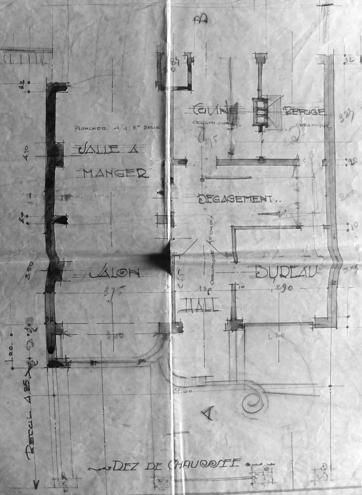 Une attention particulière a été portée aux mobiliers intégrés, comme celui de la cuisine équipée, rare pour l'époque. À l'origine, la façade devait être ornée d'un encadrement en relief reprenant des motifs organiques de style Art nouveau, non réalisé.