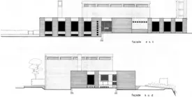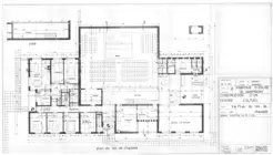 Ce centre polyvalent dispose d'un logement pour concierge ainsi que de bureaux et d'une salle de réunion. À l'étage inférieur, le terrain minier nécessite le déblayage total des sous-sols et permet de profiter de la topographie pour y construire des logements supplémentaires pour sans-abri.