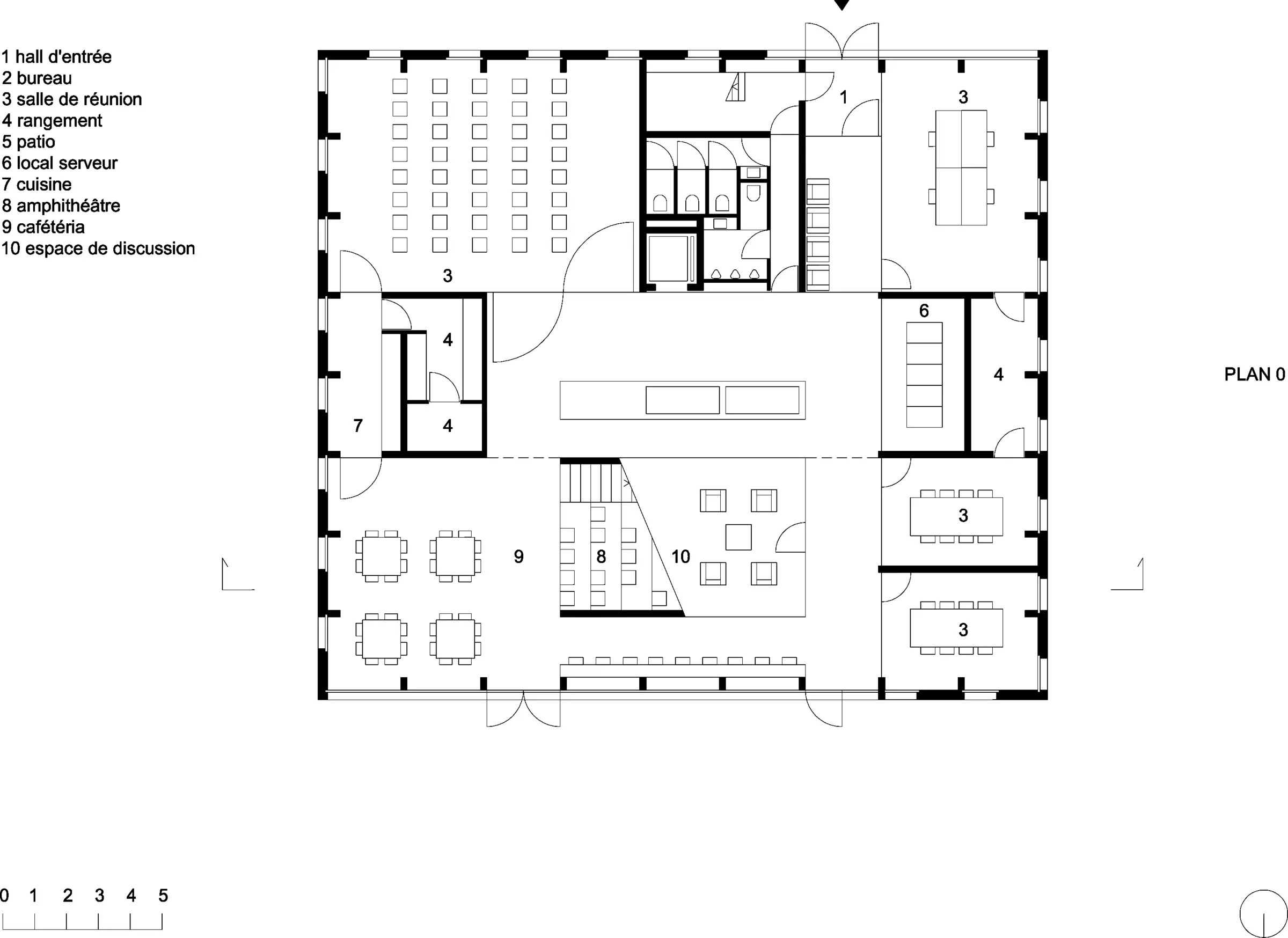Le plan se calque, selon les concepteurs, « sur la métaphore de la fleur », où « chacun des pétales représente une alcôve de travail appropriable, tandis que, par le cœur, transit[ent] les échanges et les rencontres », réduisant à l'essentiel les espaces de circulation.