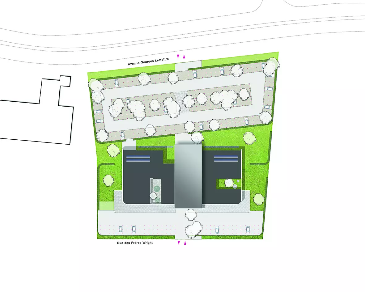 Installé sur le site de l'Aéropôle de Gosselies et destiné à regrouper plusieurs services jusqu'ici dispersés dans la région, ce bâtiment accueille le siège opérationnel de l'entreprise de télécommunications et dispose d'une surface de 3 500 m2.