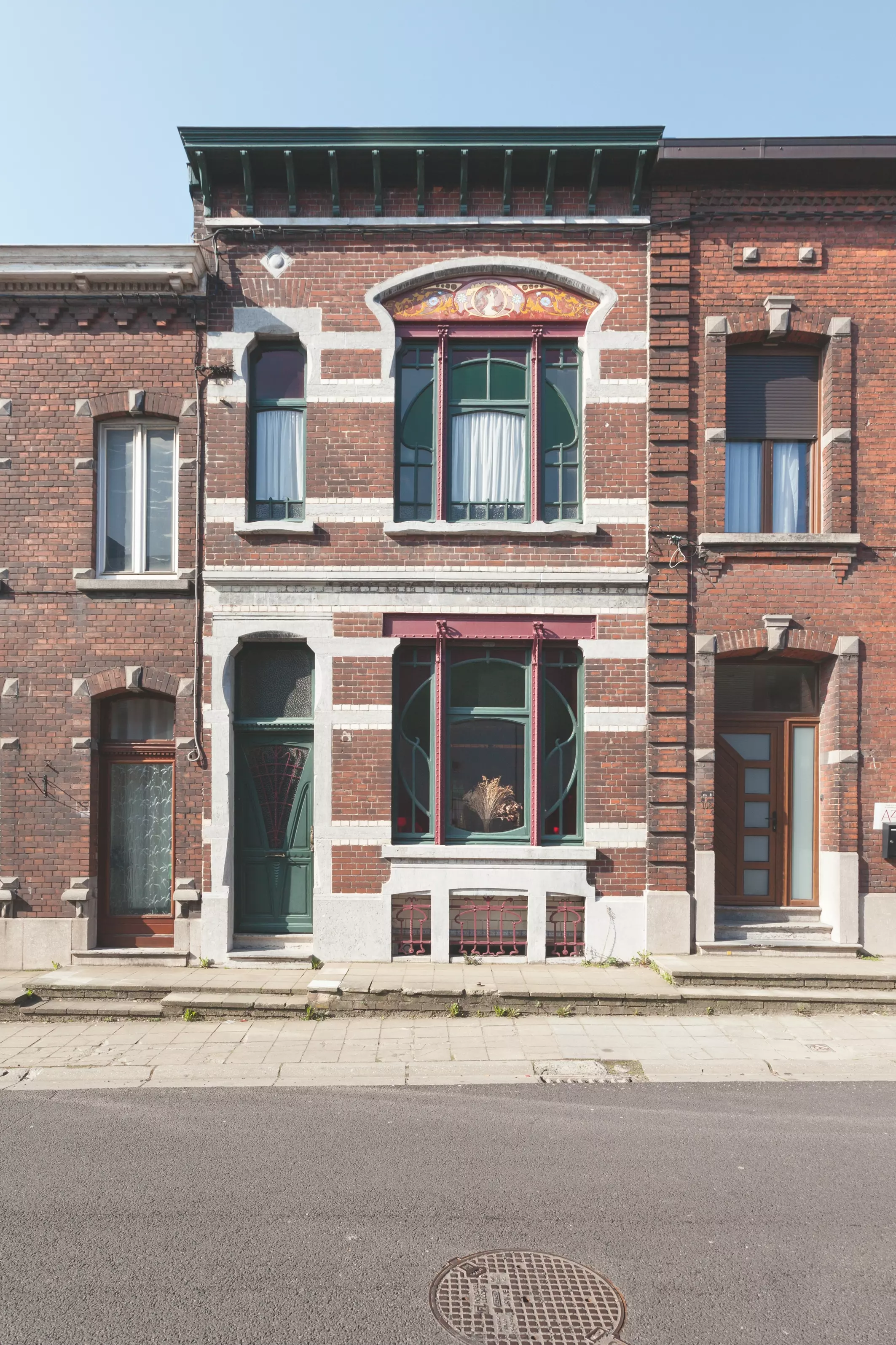Située non loin du théâtre Varia, cette habitation mitoyenne témoigne d'une certaine diffusion de l'Art nouveau en dehors des cénacles de l'avant-garde, qui s'exprime dans une façade relativement modeste de briques et pierre recourant à l'éclectisme. L'Art nouveau s'affiche ici principalement dans la composition des deux baies de droite dont les châssis allient aux belles courbes de la menuiserie le métal ouvragé mis en évidence dans les montants et linteaux. Ceux-ci font référence à l'esthétique industrielle, l'une des caractéristiques de l'Art nouveau. À l'étage, l'imposte évasée intègre un sgraffite orné d'un visage féminin de profil. Du soupirail à la corniche, l'ensemble a gardé sa cohérence d'origine.