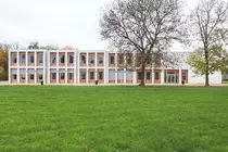 Parmi les petits bâtiments peints en bleu qui forment l'athénée royal Jules Destrée de Marcinelle se dresse une nouvelle construction conçue par Open Architectes et LT2A, s'érige au milieu de l'asphalte, des terrains de sport et des constructions basses du groupe scolaire, et propose dix nouvelles salles de classe pour accueillir le nombre d'élèves toujours plus élevé. Ce volume, tout en longueur, se déploie sur deux niveaux. Ses façades en briques vernissées attrapent la lumière alors que ses pignons, recouverts d'un revêtement en aluminium, jouent avec les effets de réflexion. Les contours des ouvertures sont marqués par un traitement en bois. Le plan, clair et simple, propose un couloir latéral qui dessert les classes installées en enfilade, positionnées légèrement en retrait ou en décalage les unes par rapport aux autres. Open architectes réalisent également en 2017 un temple protestant à Ransart (Charleroi).