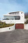 À l'orée du bois du Prince, légèrement en retrait et séparée de la route par deux murs d'enceinte nets, une maison blanche, toute en rondeur, se dresse. Loin des constructions traditionnelles, elle s'affranchit des compositions classiques et des formes les plus usitées ; ici, pas de toit à double pente en tuiles, de briques rouges, de petit balcon ou de cheminée.