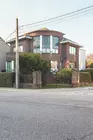 La composition de cette élégante maison aux allures de villa joue habilement de son implantation à l'angle de deux rues. En retrait des trottoirs, elle rend possible la création d'un jardin et, profitant de ce recul, déploie une intéressante façade courbe sur deux niveaux, logeant l'entrée et de larges ouvertures au premier étage.