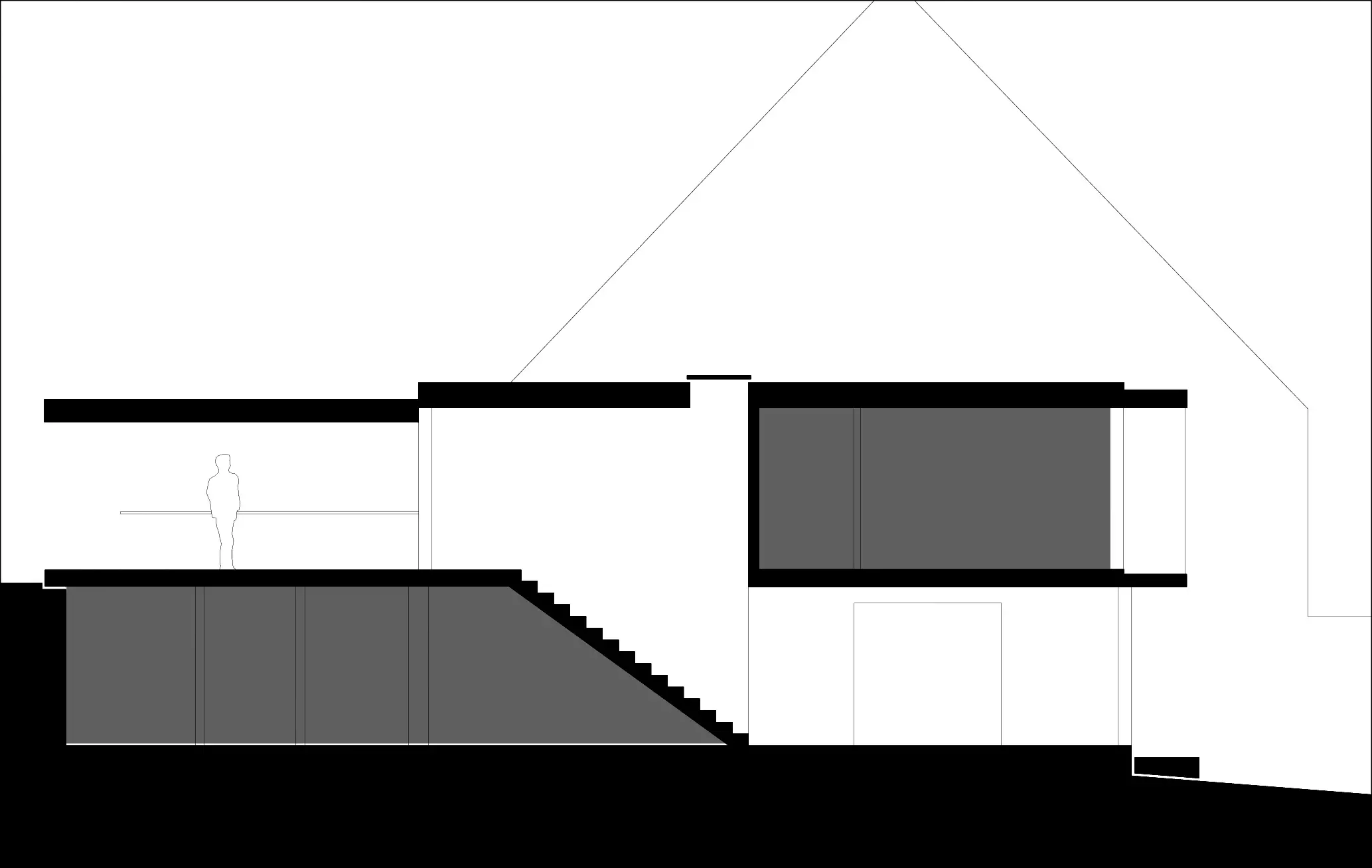Les contraintes du site, sa très forte déclivité et sa petite taille, sont transformées en atouts au moyen d'une architecture entretenant une relation forte avec son environnement. L'hétérogénéité du bâti et l'absence d'alignement sont également prises en compte. Même s'il déroge à toutes les règles urbanistiques de la commune, le projet met en place une articulation entre les bâtis voisins en adoptant un gabarit réduit et une toiture plate. S'appuyant sur un mur de pierre existant et longeant la voirie, la maison s'ancre dans son contexte historique et spatial. Une passerelle donne accès à la maison qui se développe en plan inversé : le bureau et les chambres sont situés au rez-de-chaussée et les pièces de jour un étage plus bas.