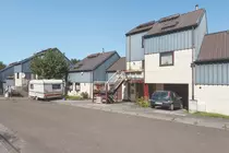 Ainsi, les gabarits traditionnels sont déjoués par une ossature légère en acier galvanisé boulonnée, recouverte en façade, et par une toiture de panneaux faits d'acier prélaqué et d'isolant. Les escaliers sont partiellement externalisés pour économiser les surfaces bâties : le jeu de niveaux et d'emprise extérieure ainsi créé privatise quelque peu les entrées.