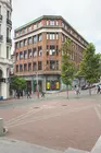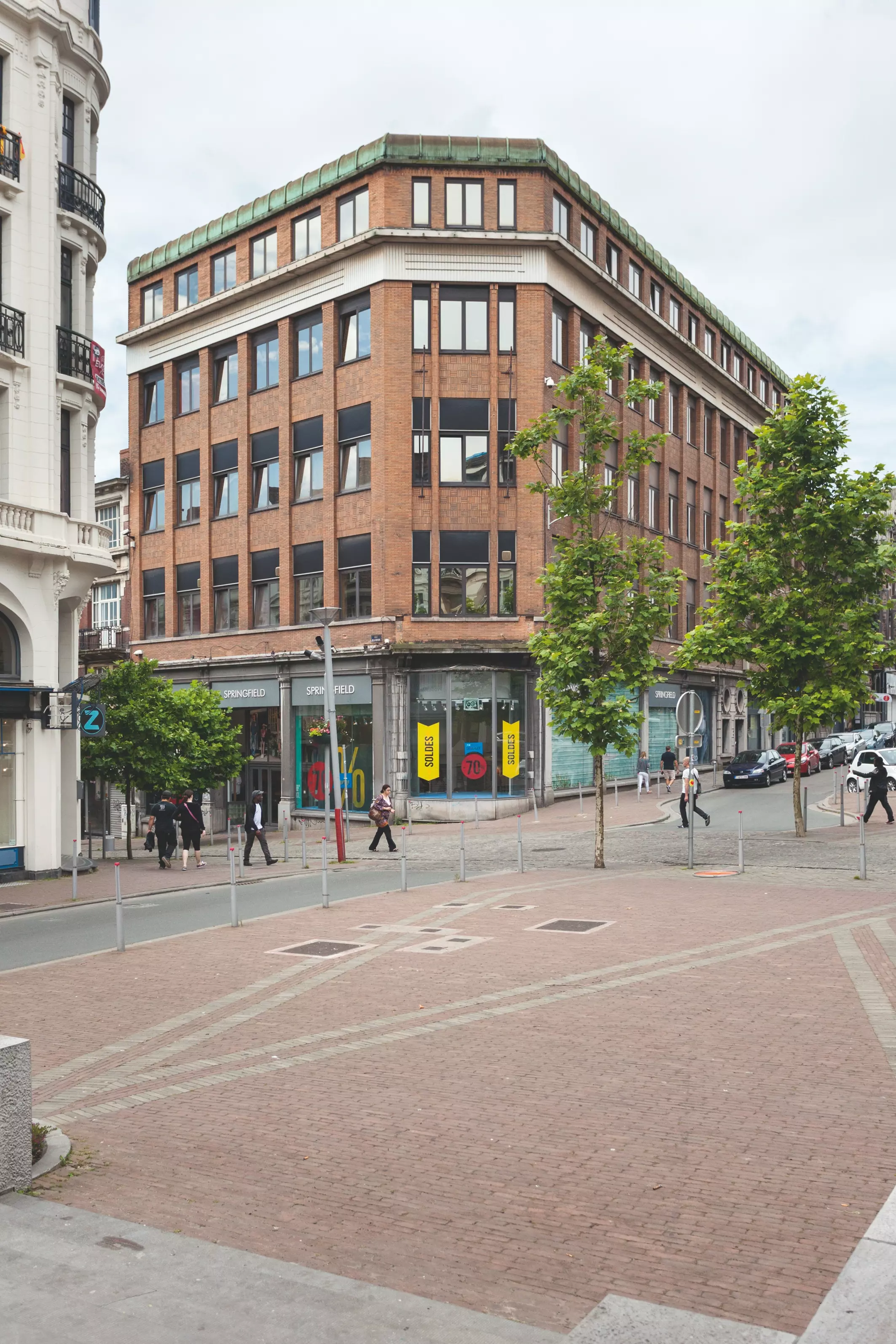 Le bâtiment est percé de deux petites cours intérieures. La devanture très ouverte est rythmée de colonnes en pierre bleue. La structure du bâtiment – un système de poutres et de colonnes – se lit dans la composition des façades qui exprime les travées par des décrochés systématiques.