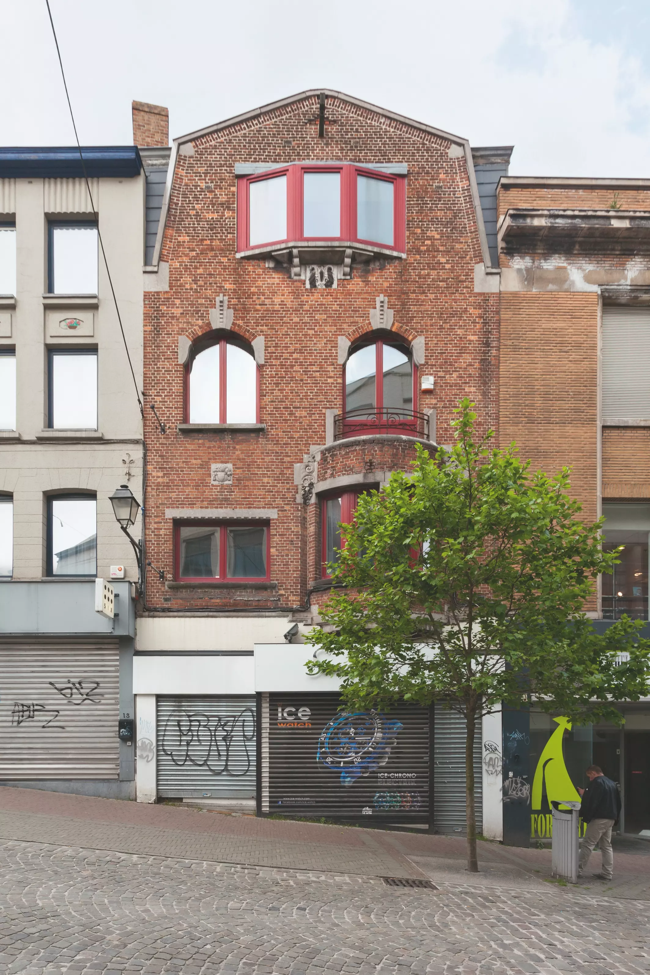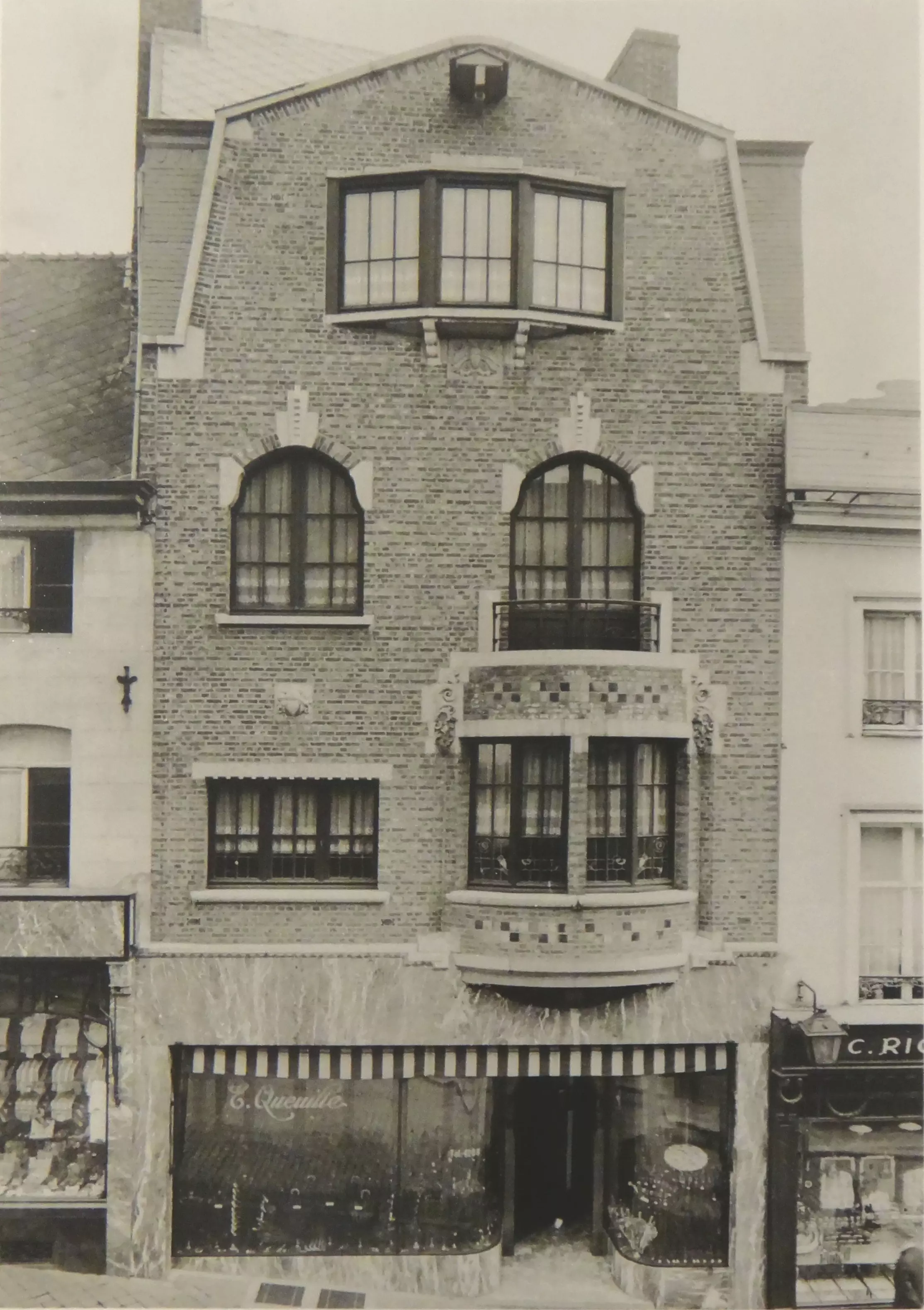 Contemporaine de la maison Bertinchamps, des mêmes architectes, cette réalisation modeste se trouve rue de la Montagne, accueillant alors des commerces de luxe. Cette architecture est marquée par l'emploi de la brique et de la pierre de taille traditionnelles.