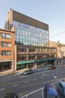 L'immeuble de la polyclinique se développe sur six niveaux ; des plateaux libres, tous identiques et rythmés par des colonnes. La façade-rideau en verre réfléchissant, fragmentée par de fines menuiseries, repose sur un rez-de-chaussée massif en pierre bleue et est couronnée par un dernier étage habillé d'un bardage en aluminium.