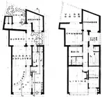L'immeuble de rapport, installé sur une parcelle longue et étroite, accueille au rez-de-chaussée l'agence de la Caisse patronale et un logement par étage. La façade, au calepinage rigoureux, s'habille de blocs préfabriqués et masque la structure en béton du bâtiment. D'épais cadres en pierre blanche accentuent les ouvertures dans la façade en englobant les garde-corps des balcons et accueillent les châssis légers en tôle emboutie.