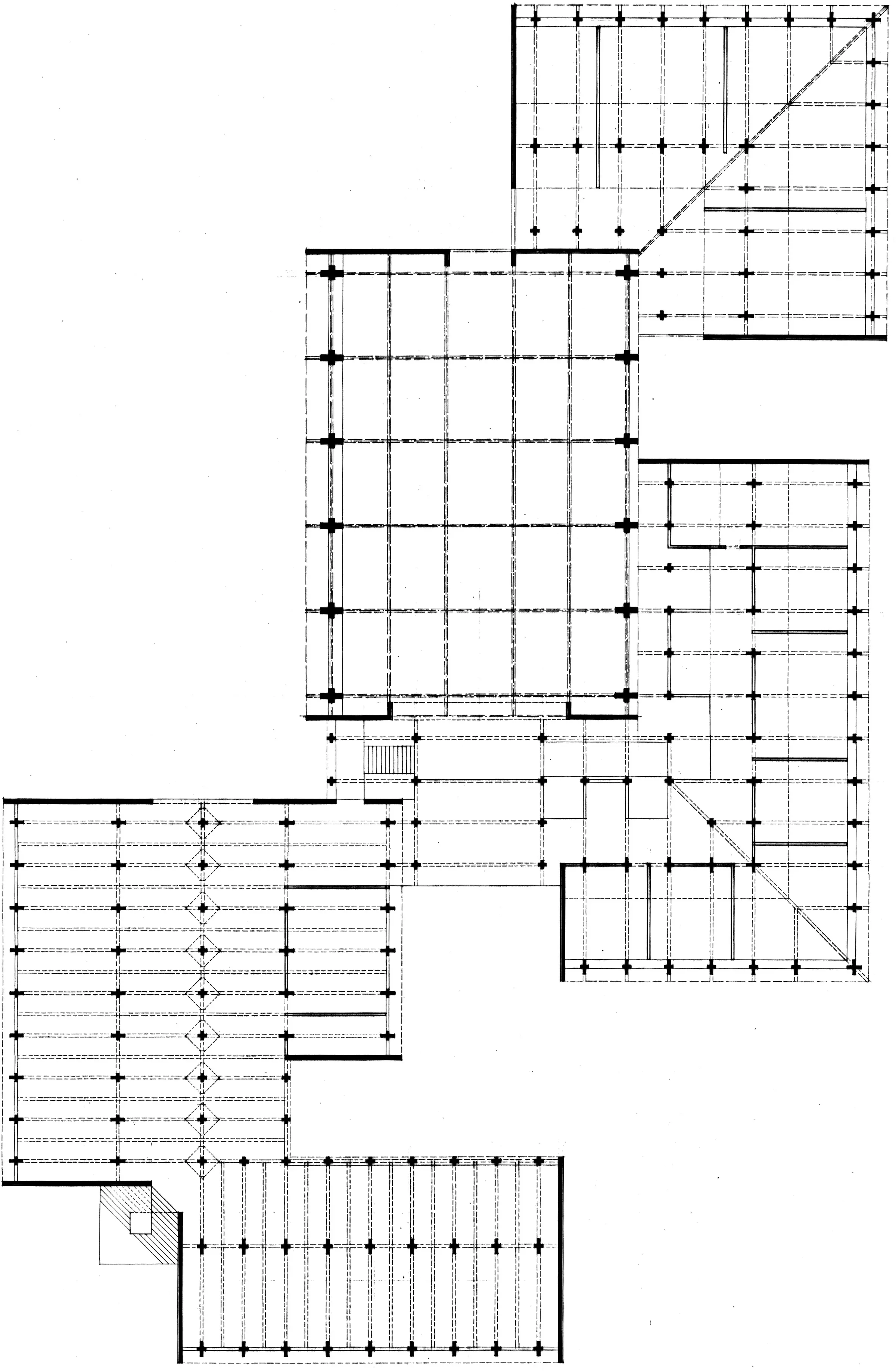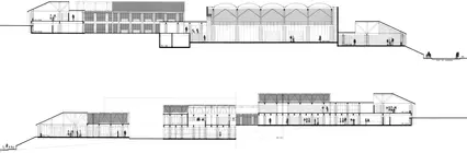 Les volumes alternent des symétries à des dispositions plus libres et sont adaptés pour bien éclairer les espaces. Complexe, la charpente en bois permet, lorsque la toiture est ajourée, d'imprégner les espaces de lumière zénithale. La structure qui soutient cette charpente est constituée de parpaings.