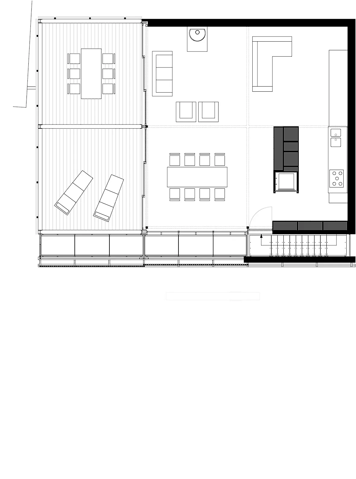 Conformément aux souhaits du propriétaire, tout a été fait pour limiter l'entretien : le béton, l'acier galvanisé et le pin autoclavé ne nécessitent aucune attention spécifique. La maison se distingue également par ses grandes qualités énergétiques (compacité, isolation et étanchéité à l'air).