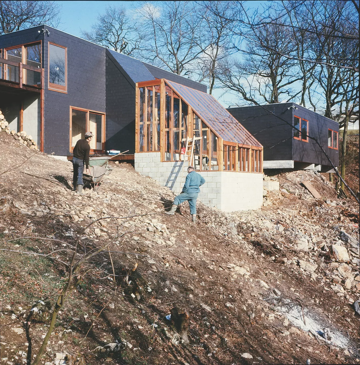 La maison a été construite avec le système modulaire PATZE développé par Jean Englebert à partir de 1964, suivant ses recherches sur la préfabrication et l'industrialisation de l'architecture. Il s'agit d'un Meccano en bois qui doit son appellation au nom de famille du menuisier qui, pendant plus de vingt ans, accompagne cette expérience originale.
