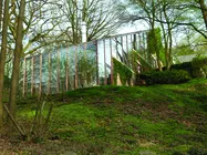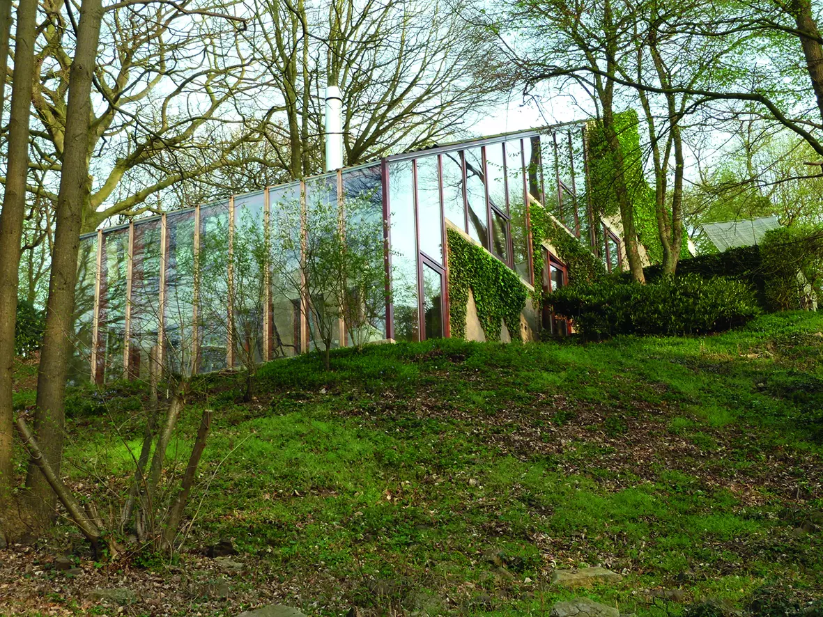 Le bâtiment s'implante en surplomb de la vallée de l'Ourthe, dans une forêt en forte déclivité. Ce site exceptionnel conduit tout le projet. La construction s'arrime littéralement à l'éperon rocheux affleurant et déroule le programme suivant quatre plateaux en lien direct avec le sol.