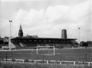Dans les premiers projets de 1946, le complexe sportif comporte un terrain de football avec tribune, deux terrains de tennis, des vestiaires, une piscine, un étang bordé d'une plage, une école et une plaine de jeux pour les enfants. De ce vaste programme ne seront réalisés que les terrains sportifs, la tribune, les pavillons des vestiaires et le bâtiment scolaire avec quatre classes surmontées d'un grand réfectoire à l'étage (aujourd'hui démoli).