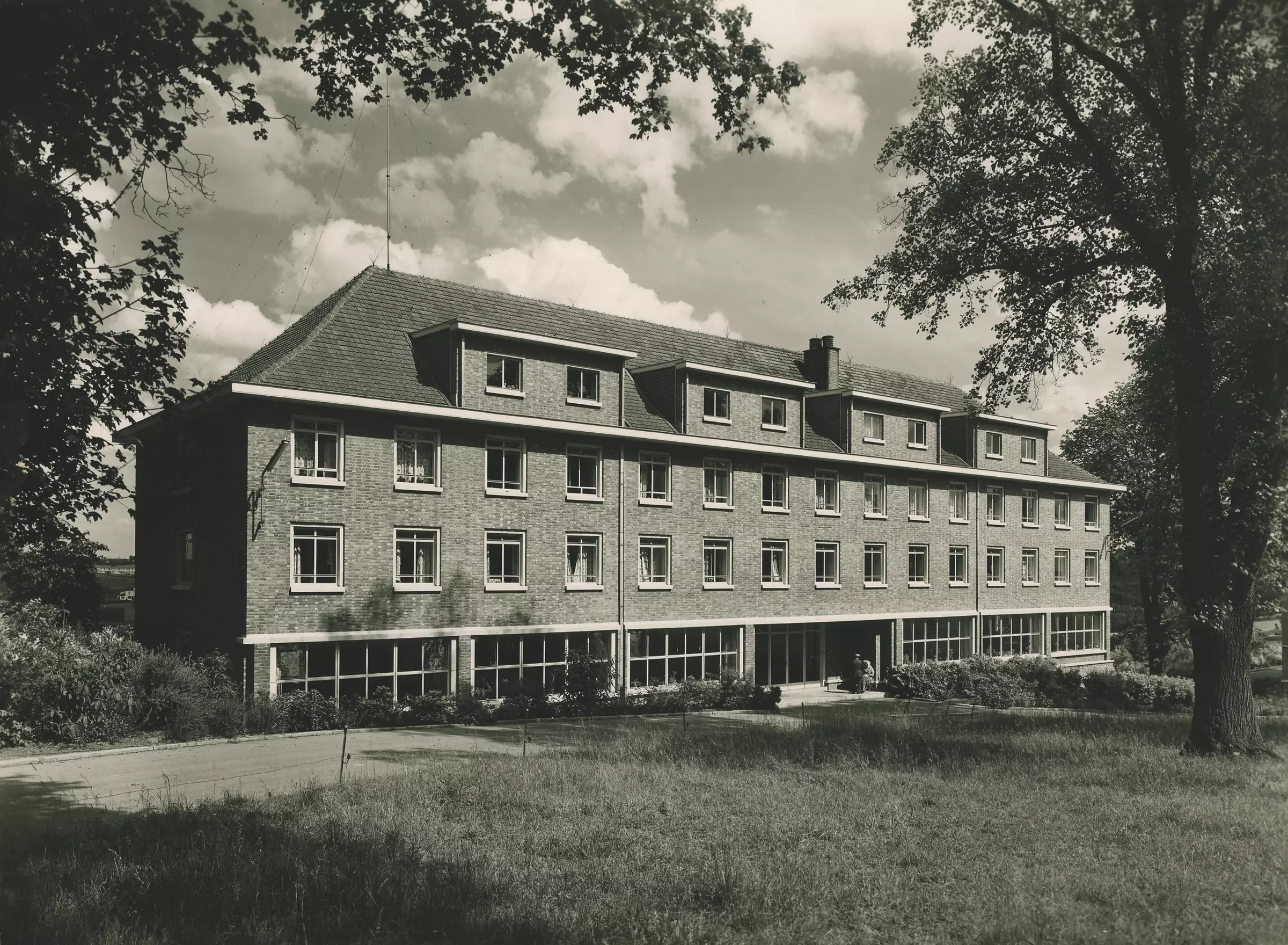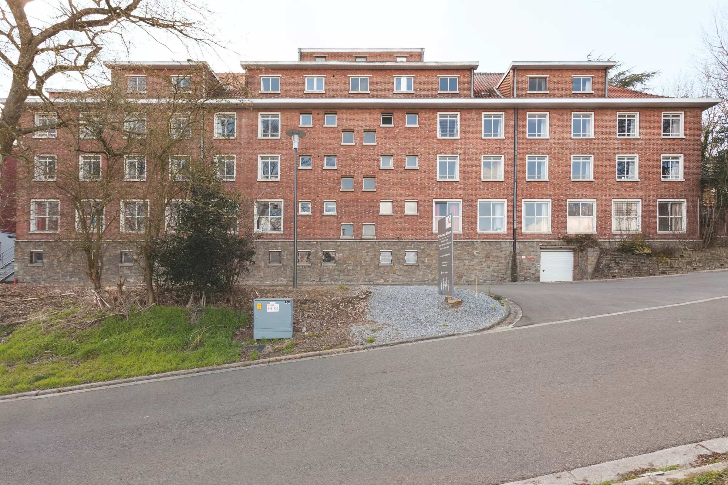 Comme pour l'orphelinat, ils conçoivent une cité pavillonnaire formée de six bâtiments implantés sur le domaine d'une ancienne ferme. L'ensemble se compose d'un édifice central qui accueille l'administration et les services communs, ainsi que de cinq pavillons plus petits, implantés en cercle autour d'une pelouse centrale. Les plans et les matériaux employés sont élémentaires : soubassements en pierre bleue, corps des bâtiments en briques et toitures à deux pans en tuiles. L'aspect traditionnel est contrebalancé par les surfaces entièrement vitrées au rez-de-chaussée. Côté rue, une façade en briques rouges est ouverte par trois types de fenêtres carrées.