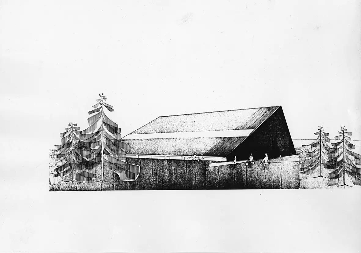 Ce projet participe à la vaste commande de construction de centres sportifs avec bains de natation, menée par plusieurs communes de l'agglomération de Charleroi dans les années 1970 comme à Monceau-sur-Sambre et à Roux (centre Martial Hiersoux, rue des Couturelles, arch. A. Hougardy, 1972).