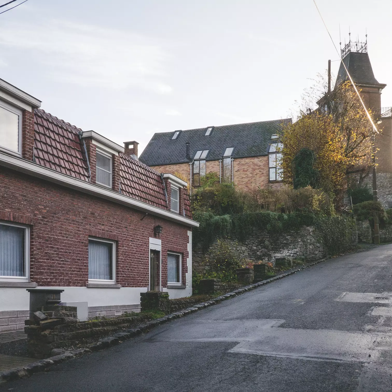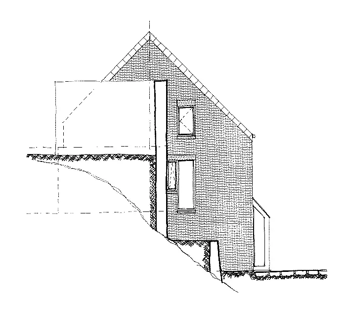 L'habitation de l'architecte est pensée et conçue dans le respect du site : elle est encastrée discrètement dans un terrain escarpé, situé le long d'une petite rue à forte déclivité, et implantée sur les caves d'un ancien bâtiment.