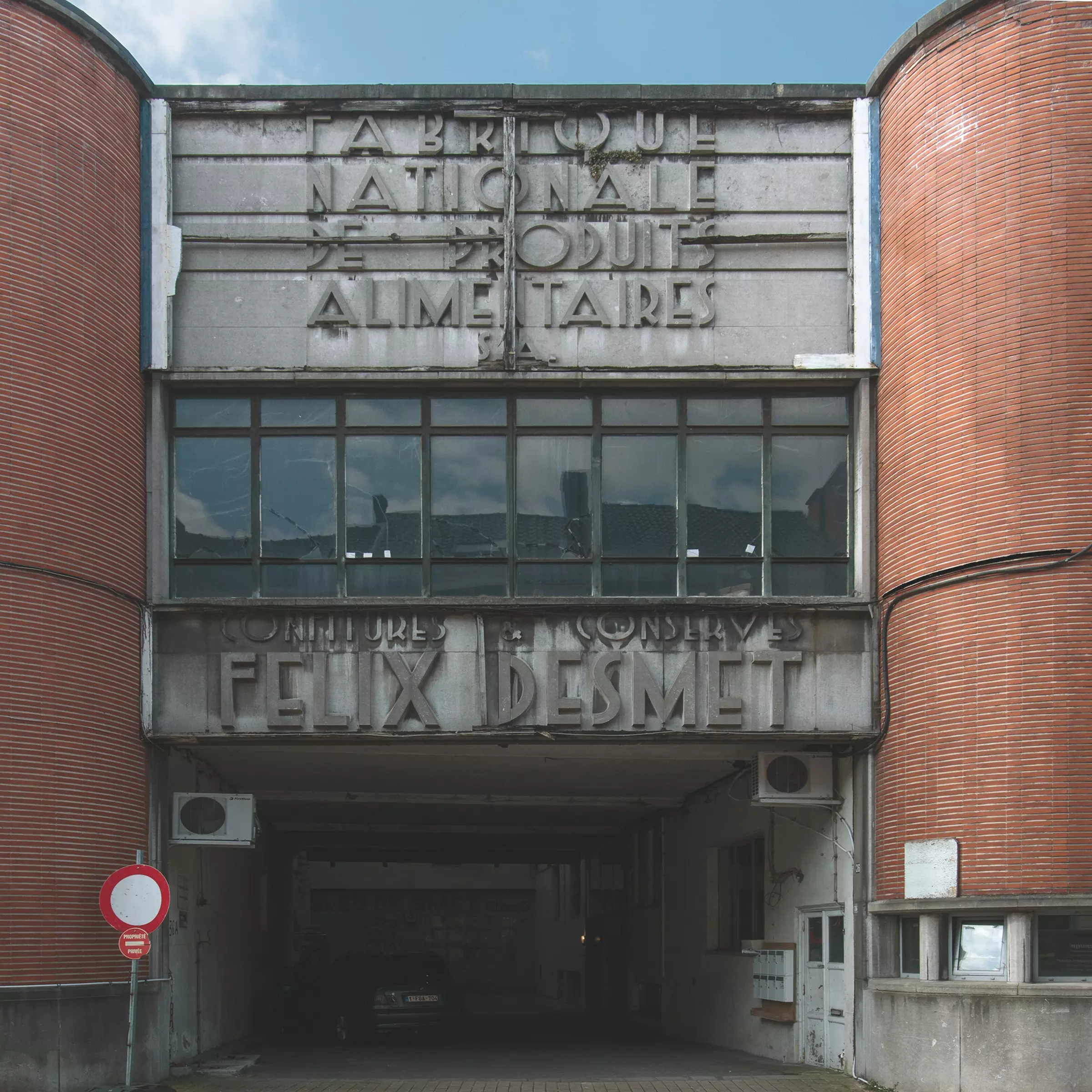 À l'issue de la Seconde Guerre mondiale, Félix Desmet confie la construction d'une fabrique nationale de produits alimentaires, confitures et conserves à l'architecte M.-F. Michiels. Le programme consiste en une unité de production organisée autour de l'accès des véhicules, à la manière de la « marche en avant » des cuisines professionnelles d'aujourd'hui. Le procédé de conservation utilisé à l'époque est la stérilisation à haute température et le conditionnement en bocaux de verre à joint caoutchouteux. Le programme se complète d'une conciergerie et d'un bureau. La structure est réalisée en béton armé, recouverte en façade de longues briques appareillées en alternance de panneresses et de boutisses sur la même assise, ce qui s'adapte bien aux courbes de l'entrée principale. Les châssis (dont peu ont subsisté) sont métalliques, intégrés en bandes horizontales soulignées par les seuils et linteaux continus.