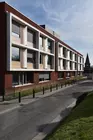 Intégré dans un contexte d'habitations pavillonnaires et mitoyennes, le projet comprend deux volumes parallélépipédiques en briques rouges de trois et quatre niveaux reprenant les espaces privés. Pour accroître le sentiment d'appartenance et de bien-être, une réflexion est portée sur les choix du mobilier, de matériaux et de couleurs qui se veulent chaleureux et lumineux.