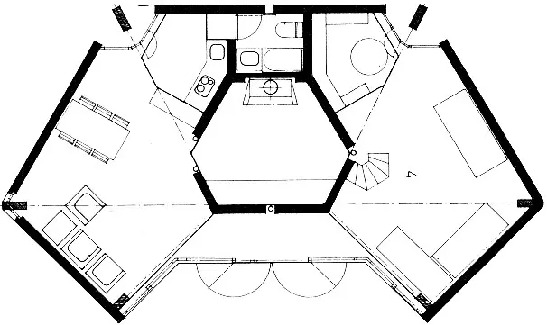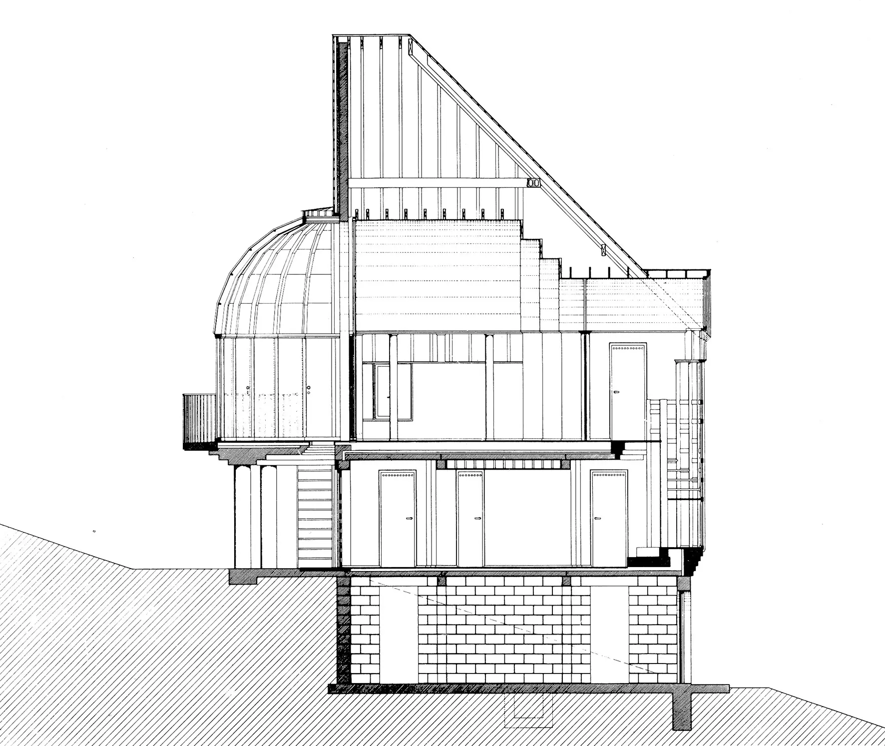 Le programme est simple et s'appuie sur un mode de vie en contact étroit avec la nature. Le pavillon s'implante dans une clairière, sur un replat du versant tourné vers le nord. Cette orientation fonde la posture du projet : un volume tendu vers le captage de la précieuse lumière solaire par un grand hublot zénithal entre les frondaisons des arbres, une large baie vitrée ouvrant sur la clairière. Le volume est obtenu par découpe d'une pyramide tronquée à base octogonale ; la charpente en bois et les revêtements intérieurs en simples planches ainsi que les maçonneries de blocs de béton sont blanchis, créant ainsi une spatialité légère et lumineuse au cœur du sous-bois.