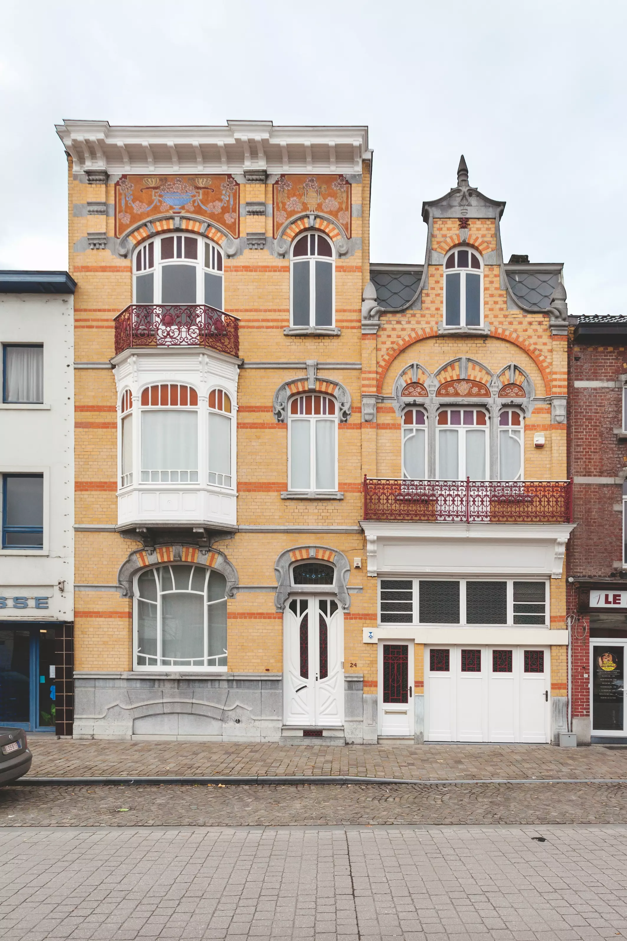Enfin, les sgraffites représentant des vasques de fleurs ressemblent à ceux d'une maison attribuée à Oscar Rayon, rue Huart Chapel, 7, à Charleroi. S'y ajoutent ici des papillons posés sur les anses.