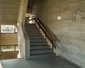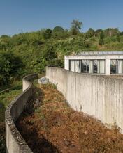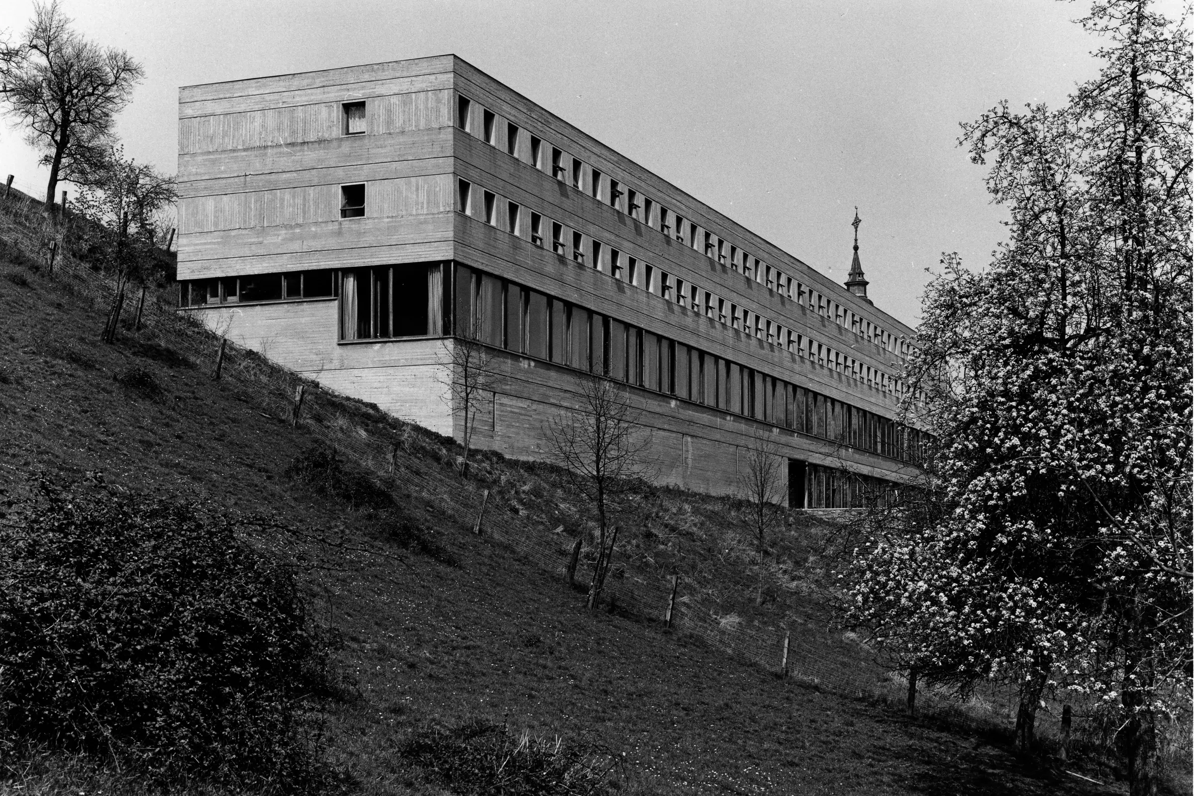 Le site est exceptionnel : sur les hauteurs de la vallée de la Sambre et à côté d'une abbaye dont les principaux édifices ont été bâtis entre le XIIe et le XVIIIe siècle. Le terrain destiné à accueillir la nouvelle aile possède une très forte déclivité. L'architecte y implante un volume long de 90 m parallèlement aux courbes de niveau, qu'il situe dans le prolongement des terrasses existantes, permettant d'y accéder. Le bâtiment abrite des classes de l'école secondaire, des laboratoires de sciences, une salle de gymnastique en contrebas et cent vingt chambres pour les élèves. Le tout est aménagé dans un souci de compacité et d'économie de moyens. Les élévations sont fortement caractérisées par l'expression des jeux mis en place pour le coffrage du béton. Le matériau est laissé brut de décoffrage. La fonction des étages est exprimée par le choix des typologies d'ouvertures : des fenêtres carrées pour les chambres, un bandeau de vitrage continu pour les classes. Cette épaisse ligne horizontale d'ouvertures confère un sentiment de légèreté à la massivité du volume en béton.