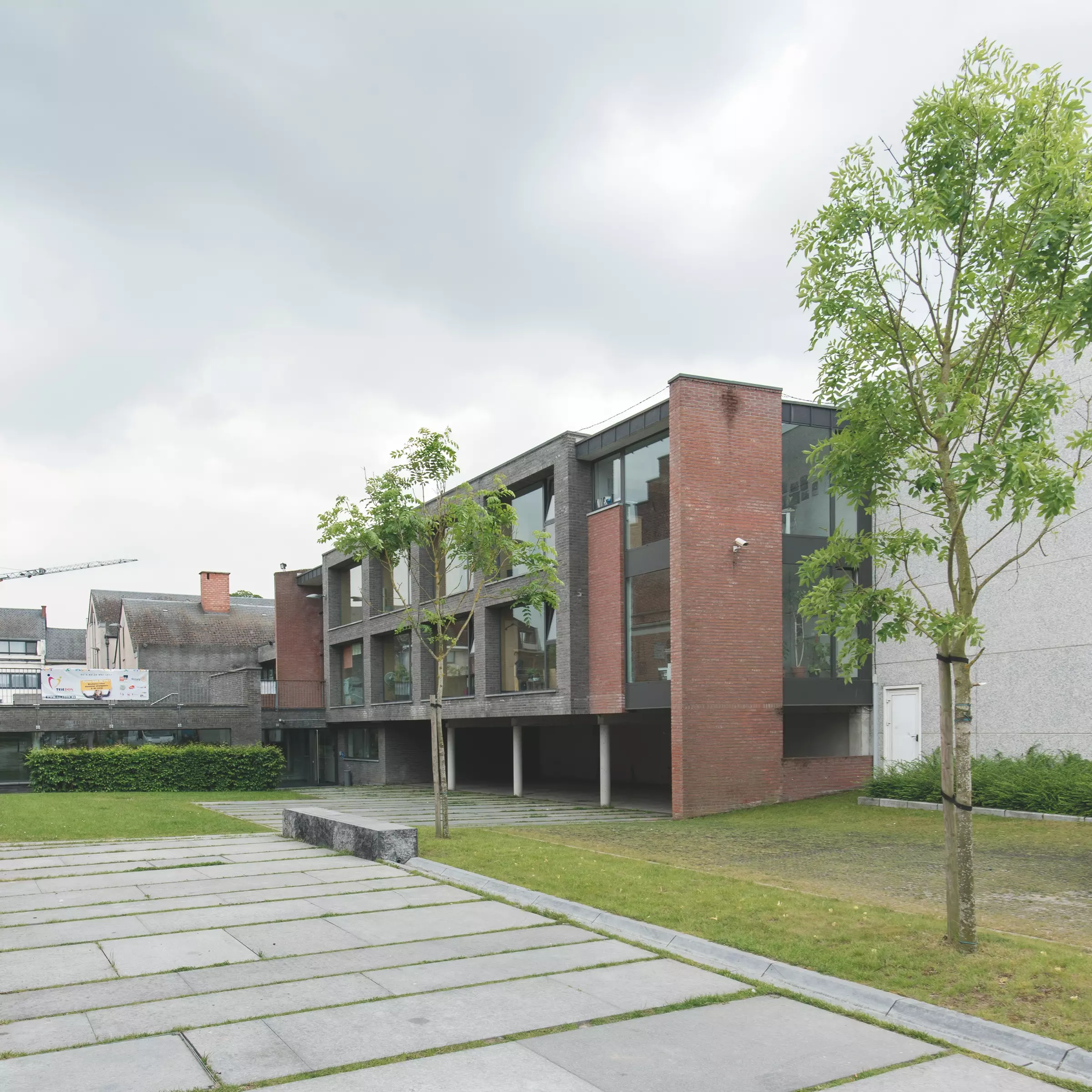 En 1999, la commune de Frasnes lance un concours prévoyant de déplacer une partie de ses services administratifs, alors logés au sein d'une annexe vieillissante. L'idée est de remplacer celle-ci par une extension contemporaine à la hauteur de l'édifice historique siégeant sur la place principale. Au vu de l'organisation chaotique et du fort dénivelé fractionnant l'îlot, l'équipe lauréate détourne la question, faisant le choix de traiter la problématique urbaine, par le biais de la réponse architecturale.