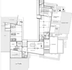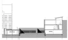 La proposition, en s'inscrivant depuis le cœur de la parcelle, entend rendre cohérence au tissu, tout en favorisant sa pratique par les habitants. D'où la forme alambiquée du projet : le bâti neuf reprend les accidents du bâti ancien, pour les absorber dans une géométrie rigoureuse. S'opère ainsi une dissociation claire entre les deux époques, tant dans l'implantation que dans la volumétrie. Deux niveaux principaux sont définis : un niveau bas accueillant la majorité des fonctions autour d'une cour partagée, et un niveau haut dégageant un espace paysager sur la toiture des premiers. Non programmé, cet espace « en plus » est offert à la ville, dessinant une promenade vers l'intra-îlot et les nouveaux locaux de la mairie, que complètent une bibliothèque et une salle d'exposition. En lieu et place de l'annexe non reconstruite, un vide cadre le Pays des Collines.