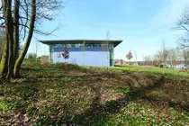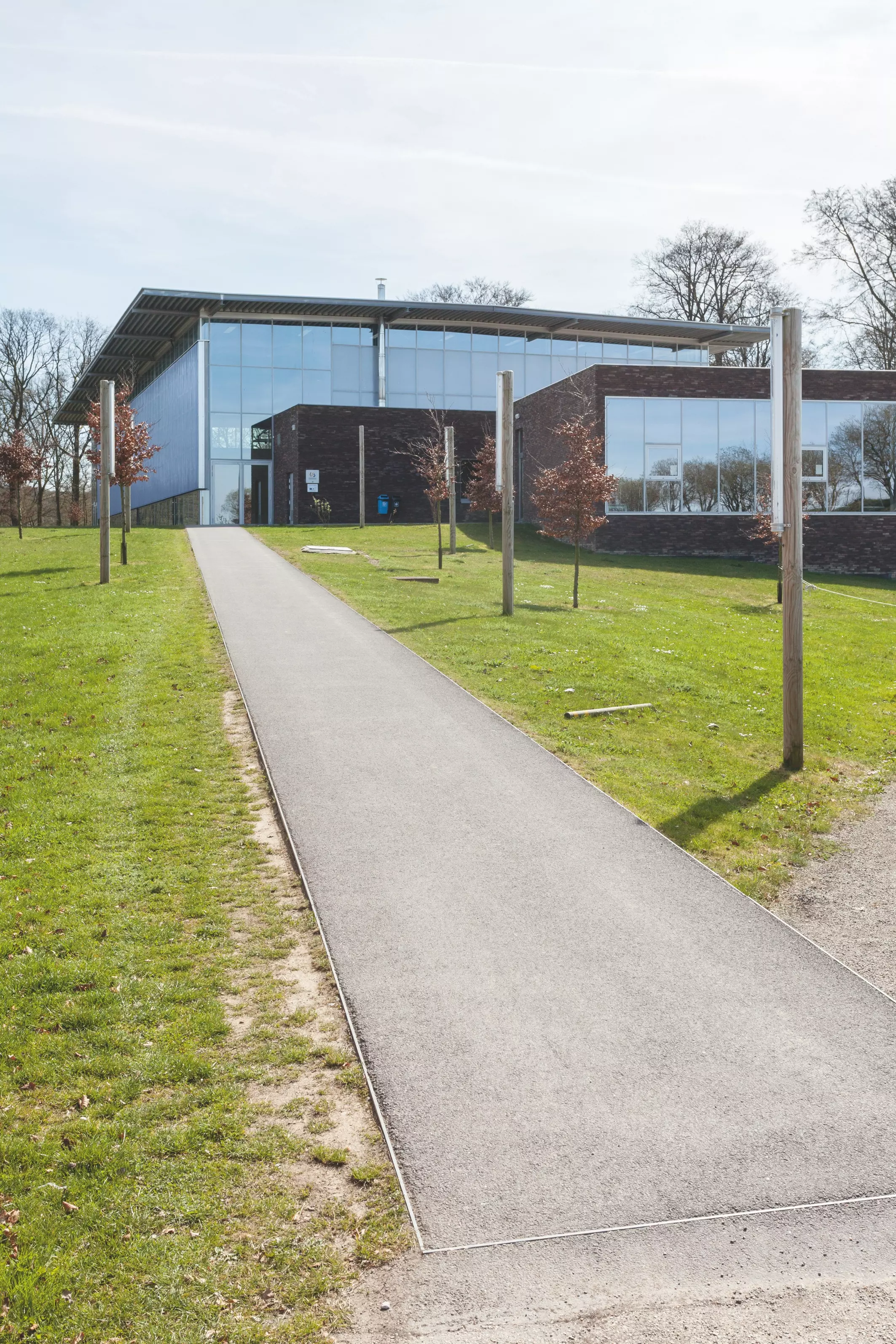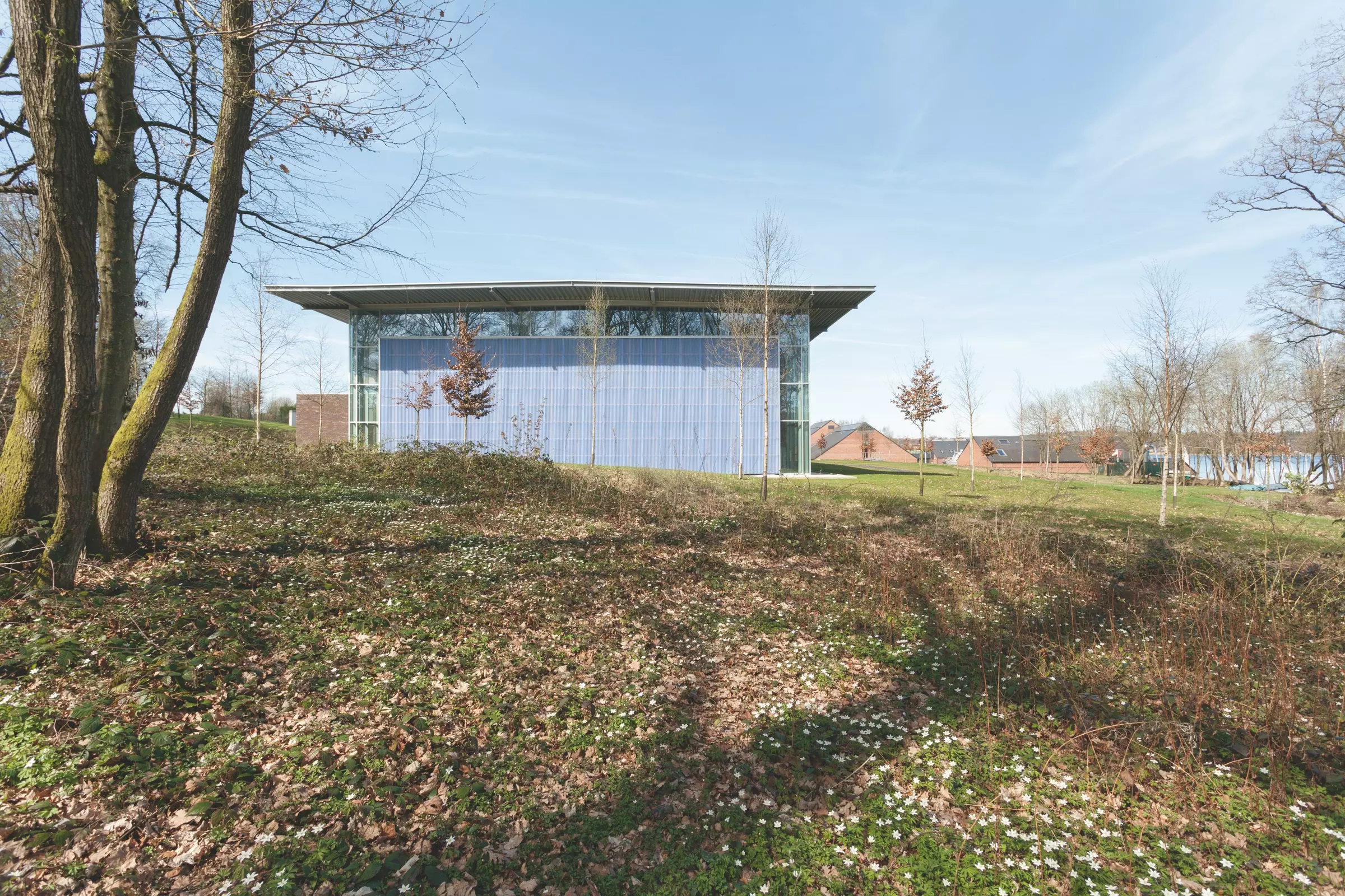 Il retravaille le talus existant avec un jeu de rampes dynamiques et de pentes dans le but de faire une progression douce entre le haut et le bas du site, entre le lac et la forêt, à l'exception d'un léger talus artificiel réservé pour les activités extérieures et la détente. Les salles sont d'une grande sobriété pour révéler par de larges baies le contexte de l'environnement naturel.