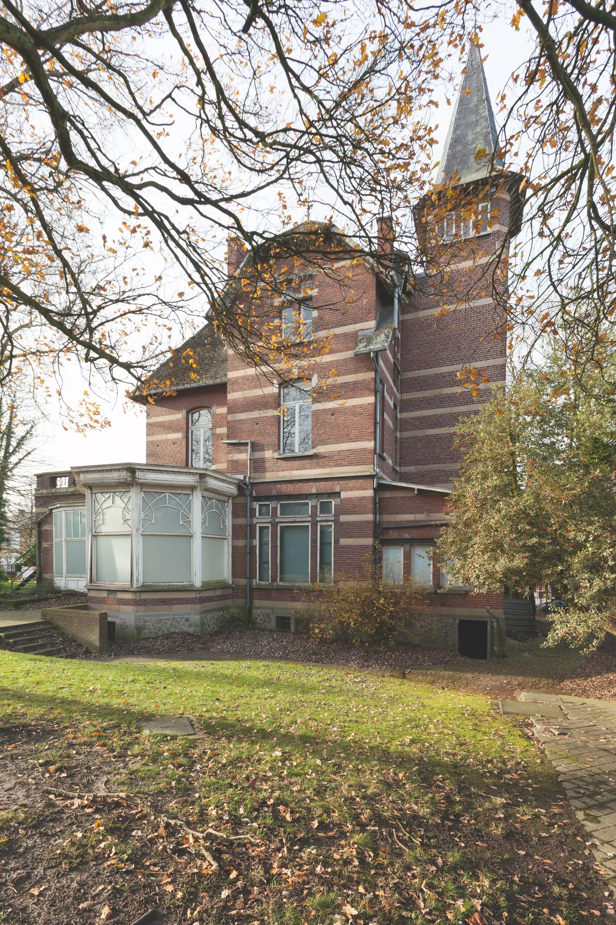 La bâtisse surplombée d'une tour carrée s'inscrit dans les caractéristiques des demeures patronales de l'ère industrielle. À la demande de l'ingénieur des mines, Louis Thibaut, directeur des charbonnages de Courcelles-Nord, l'architecte gantois Oscar Van de Voorde construit cette maison avec la volonté de mettre en évidence le progrès industriel par l'intégration d'éléments innovants, comme l'exceptionnelle porte éventail dont l'ingénieux mécanisme est mis au point par la firme bruxelloise L'Innovation industrielle.