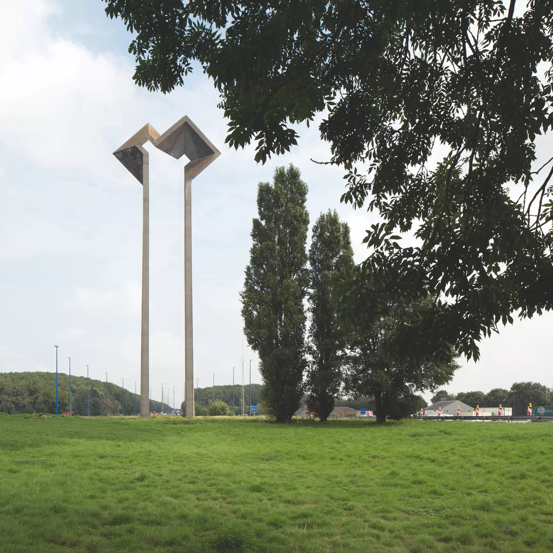 Qu'il soit initié ou non à la sculpture moderne, tout automobiliste qui traverse le poste-frontière d'Hensies-Saint-Aybert sur l'autoroute Paris-Bruxelles ne peut qu'être interpellé par le gigantesque signal en béton de l'architecte-sculpteur Jacques Moeschal (1913-2004).
