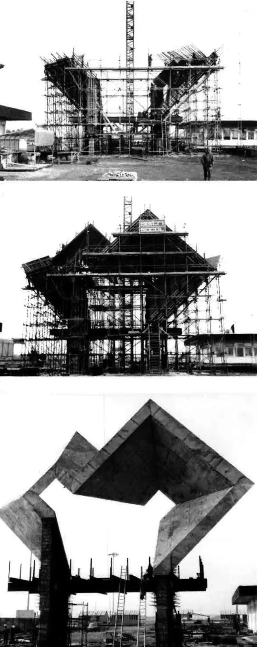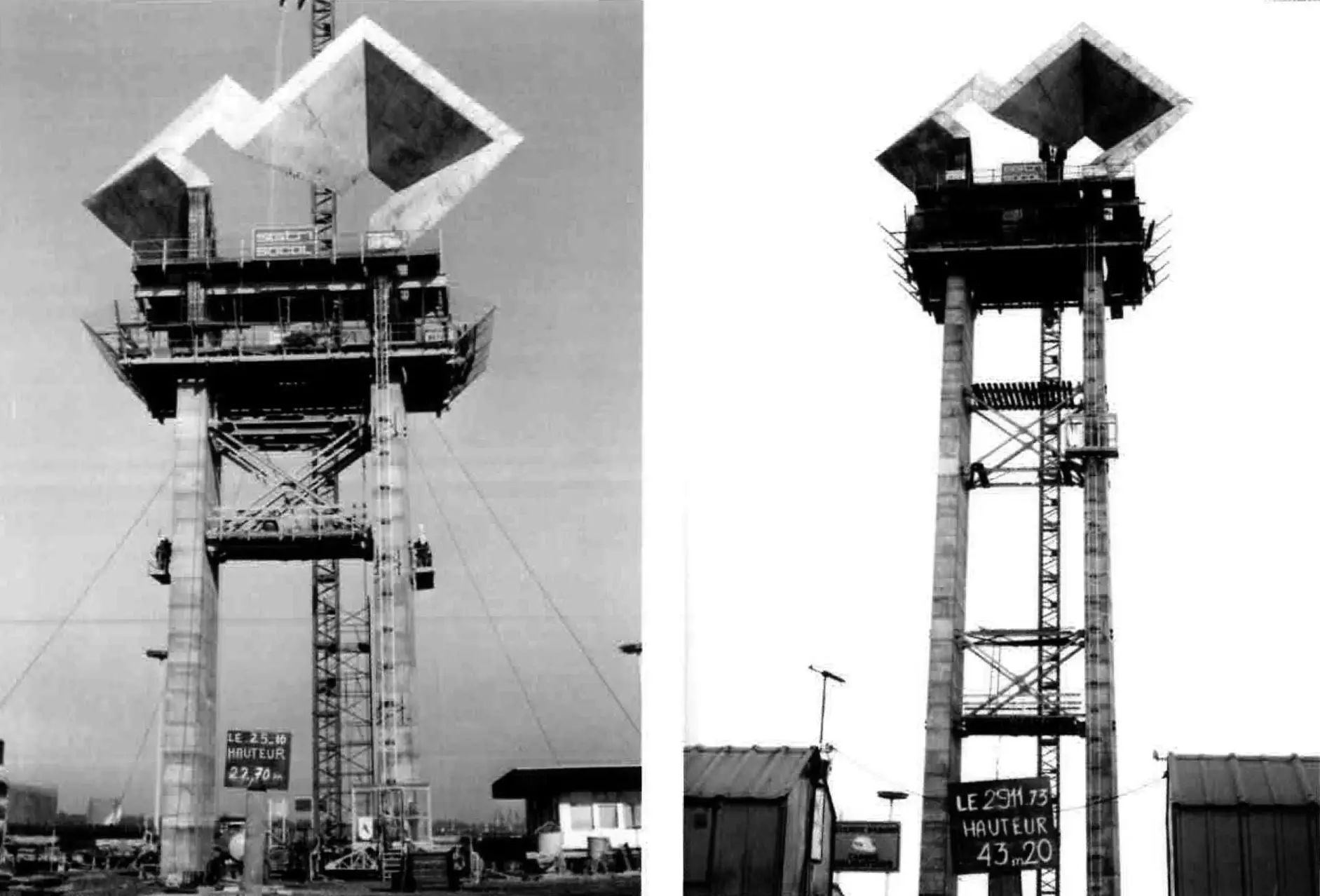Après avoir été coulée sur place, la tête de la sculpture fut montée à la vitesse de 20 cm par jour à l'aide de vérins hydrauliques. Moeschal, un des premiers à avoir utilisé avec tant de virtuosité le béton dans la sculpture, est à l'origine d'une fusion naturelle des métiers d'ingénieur, de sculpteur et d'architecte.