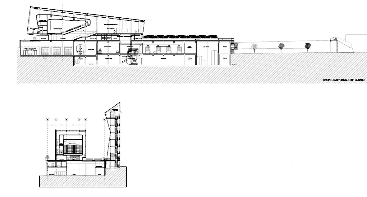 Au cœur du bâtiment, un œuf de béton armé renferme une salle de conférences (150 places).