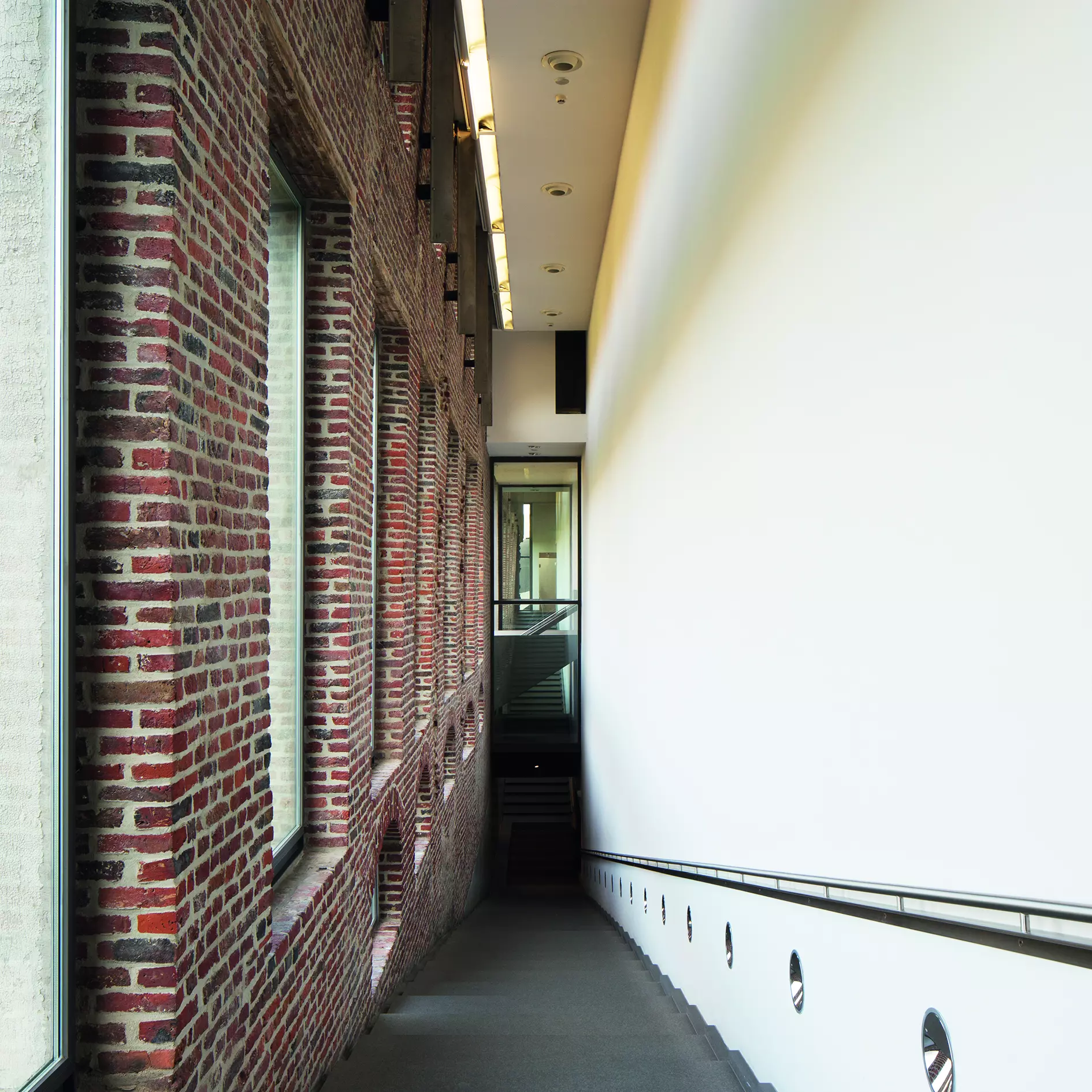 Les salles d'exposition ont des formes distinctes qui permettent une variété d'usages. Sans ouverture vers l'extérieur et complètement blanches, elles offrent un support idéal pour tout type d'installation. Le traitement des articulations entre ancien et nouveau mise sur des contrastes expressifs forts et des ouvertures qui projettent le visiteur vers les cours et le paysage.