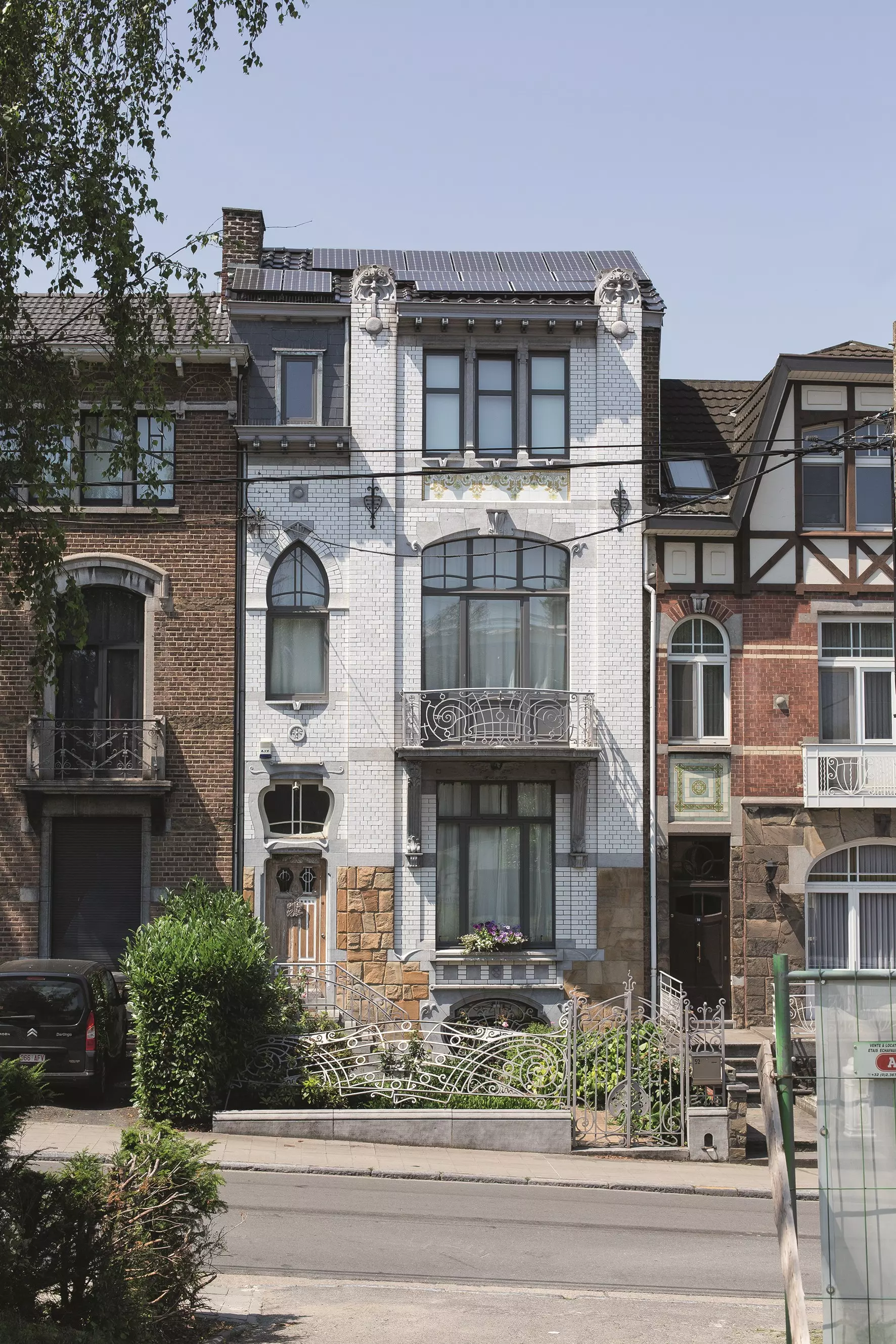 L'habitation, attribuée à Maurice Devignée, est caractérisée par une richesse formelle et la variété des matériaux employés : des moellons pour le soubassement, aux briques vernissées blanches, en passant par la pierre bleue et le décor de céramique.