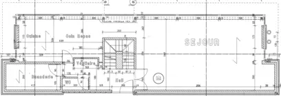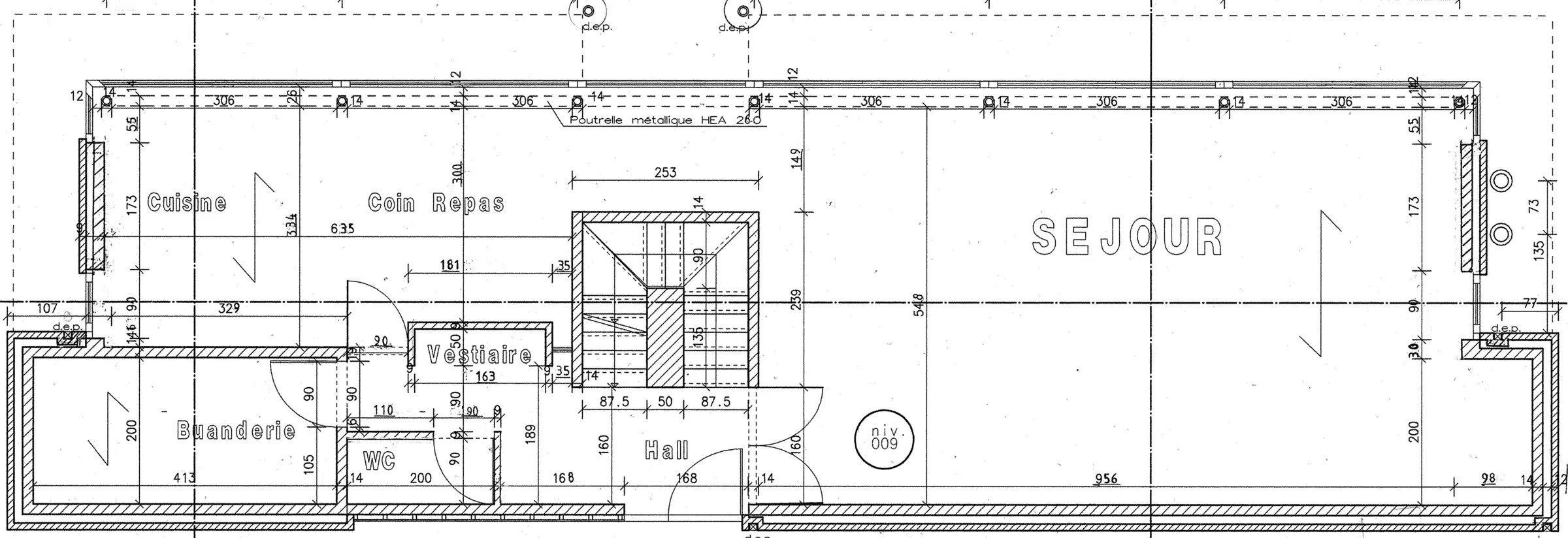 Les espaces de vie s'organisent sur deux niveaux articulés autour d'un escalier. Celui-ci distribue les circulations horizontales rejetées côté rue, libérant les surfaces de vie ouvertes sur le paysage.
