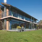 Le bâtiment présente deux visages ; relativement fermé côté rue et totalement ouvert côté jardin. L'architecture est conçue pour bénéficier au maximum de l'apport solaire. Le balcon périphérique ainsi que le prolongement de toiture permettent de réguler l'ensoleillement.