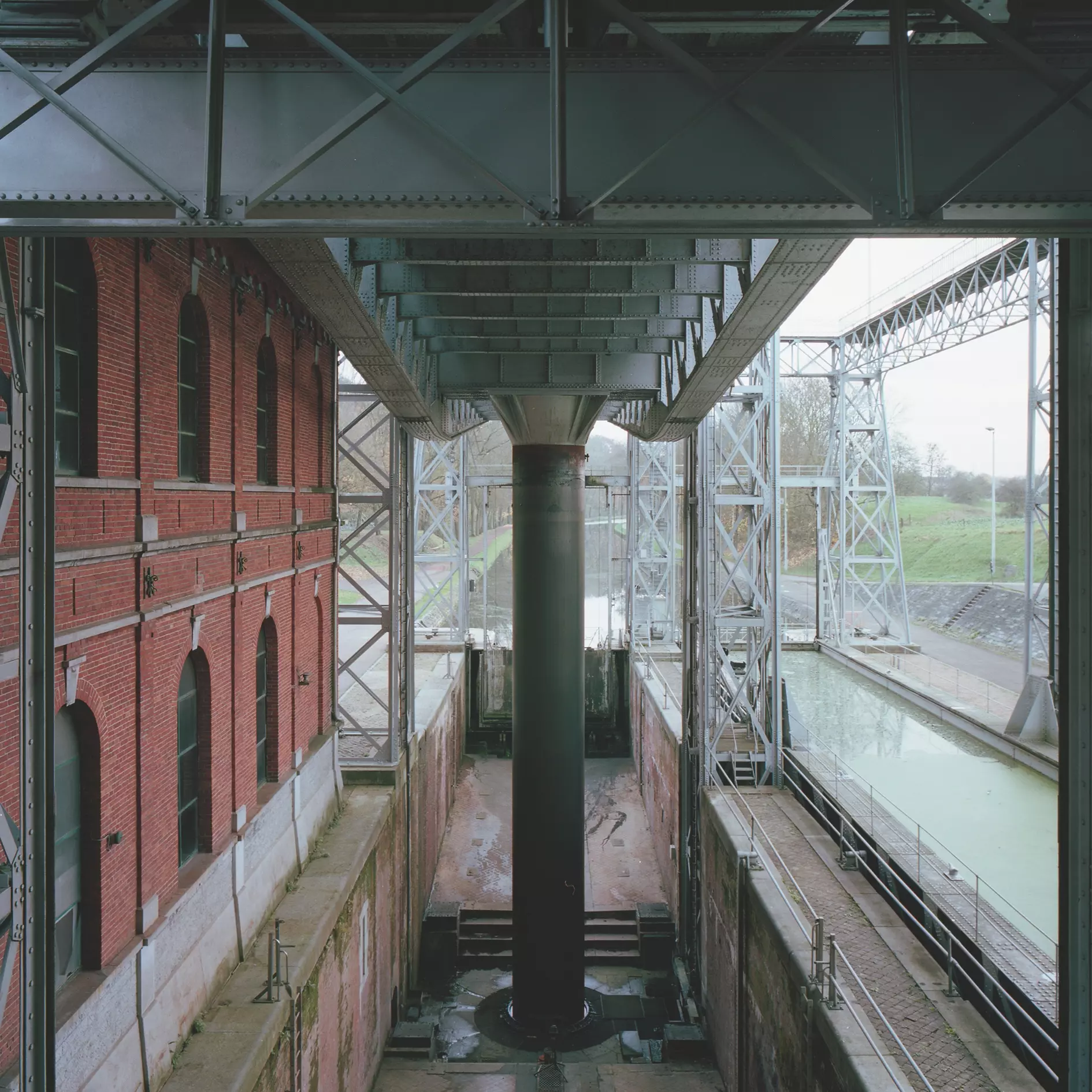 Les deux presses sont reliées par une tuyauterie de telle façon que, si un bac descend, l'eau chassée de sa presse passe dans l'autre presse et force le bac voisin à monter. Pour faire monter le bac situé au niveau inférieur, il suffit d'augmenter – en y admettant une surcharge d'eau de 30 cm, soit 74 t – le poids du bac situé au niveau du bief supérieur. C'est le principe de la balance. L'ensemble des opérations dure environ vingt-huit minutes. Le bâtiment abritant les machines fournissant l'eau sous pression se trouve sous le pont-canal du bief amont.