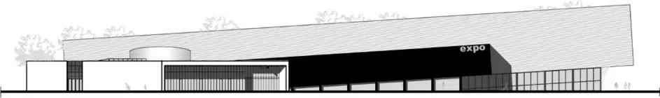 Inscrit sur les ruines d'un ancien hall d'exposition devenu obsolète, mais bénéficiant d'une implantation centrale par rapport à la ville, le projet est composé de deux volumes parallélépipédiques aux formes sobres et épurées. Le premier, bardé d'acier, intègre les grandes salles et dégage, par son positionnement oblique, de larges baies vitrées au rez-de-chaussée.