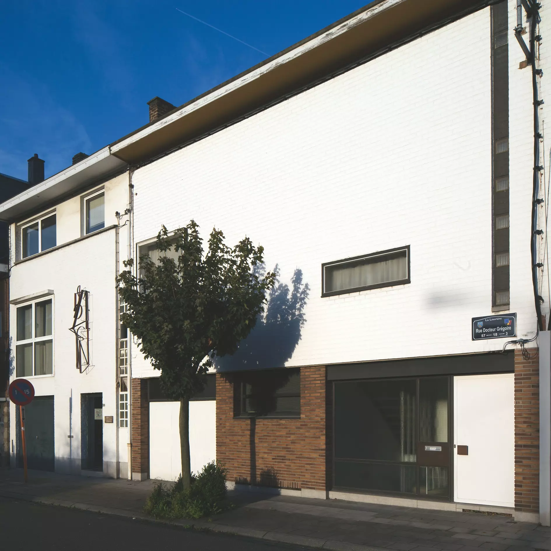 Pour installer sa famille et son étude, l'architecte Robert Charles érige une vaste habitation de 9,40 m de façade, alternant briques de couleur naturelle (rez-de-chaussée) et briques peintes en blanc (étage).